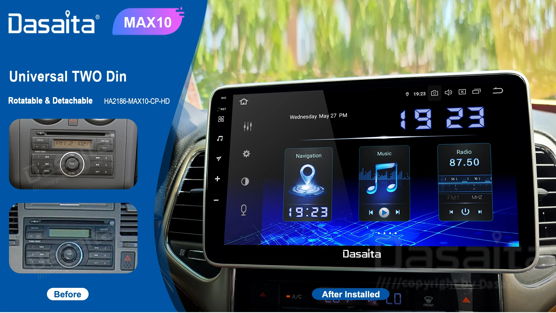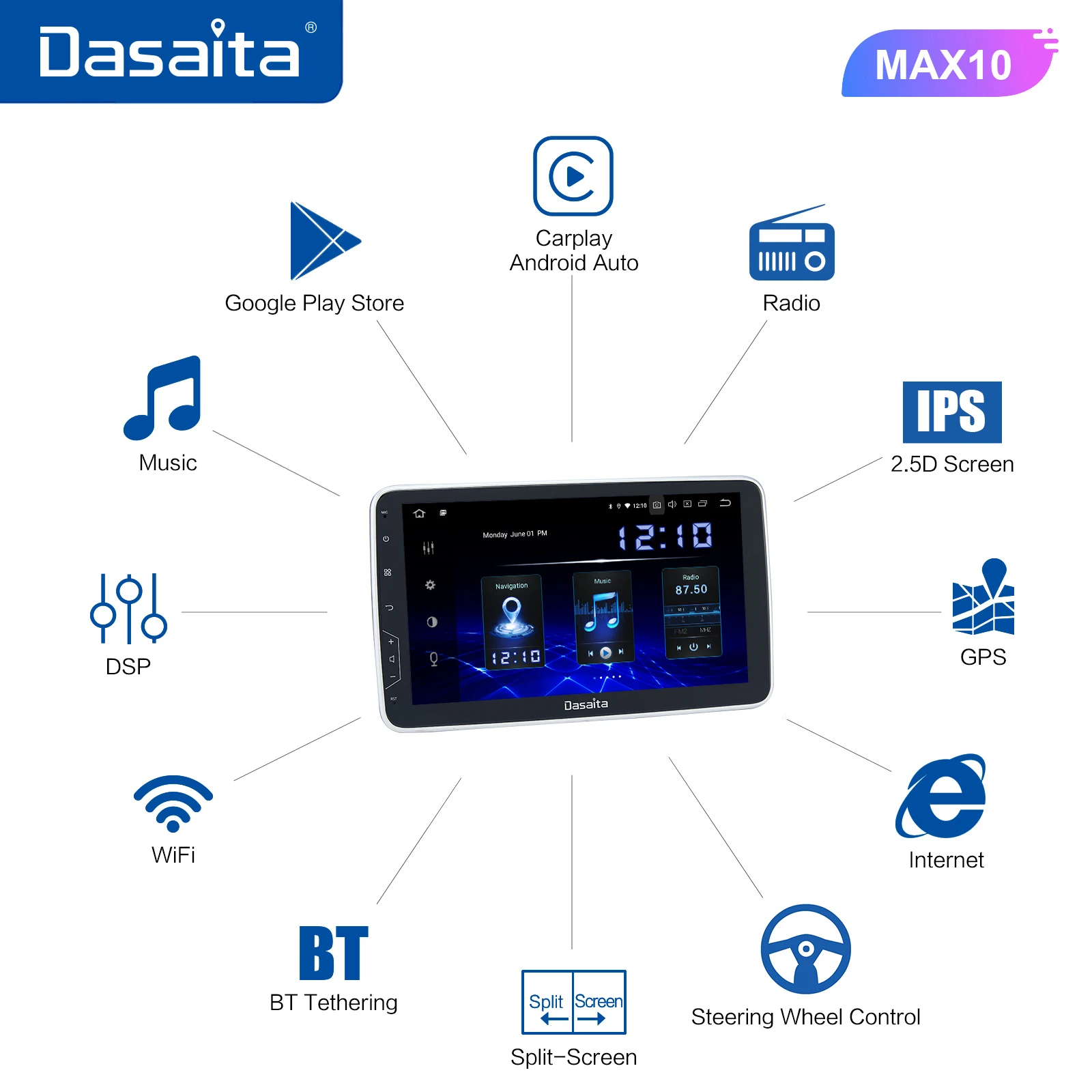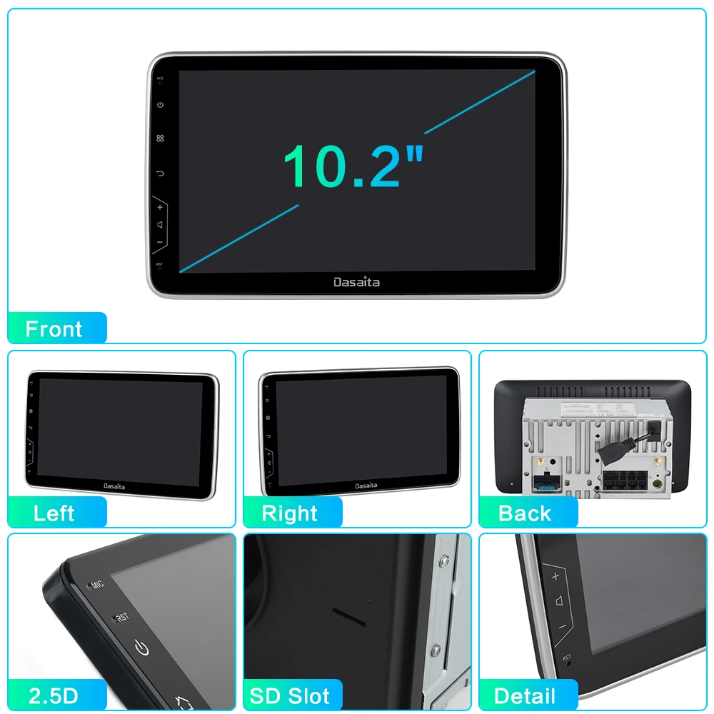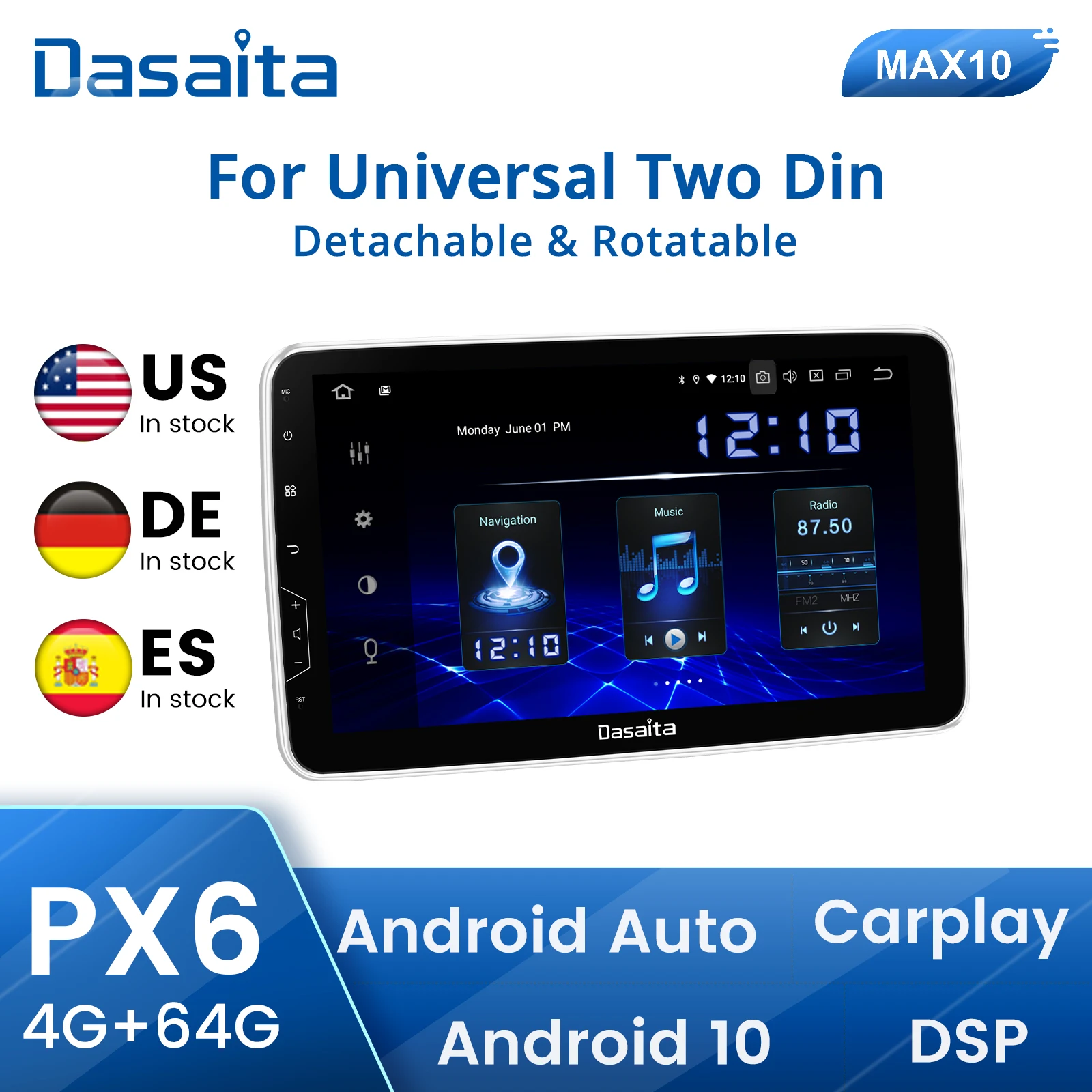 Автомагнитола Dasaita, Универсальная автомобильная стерео-система на Android 11, 10, с вращающимся экраном 10,2 дюйма, с GPS, типоразмер 2 Din