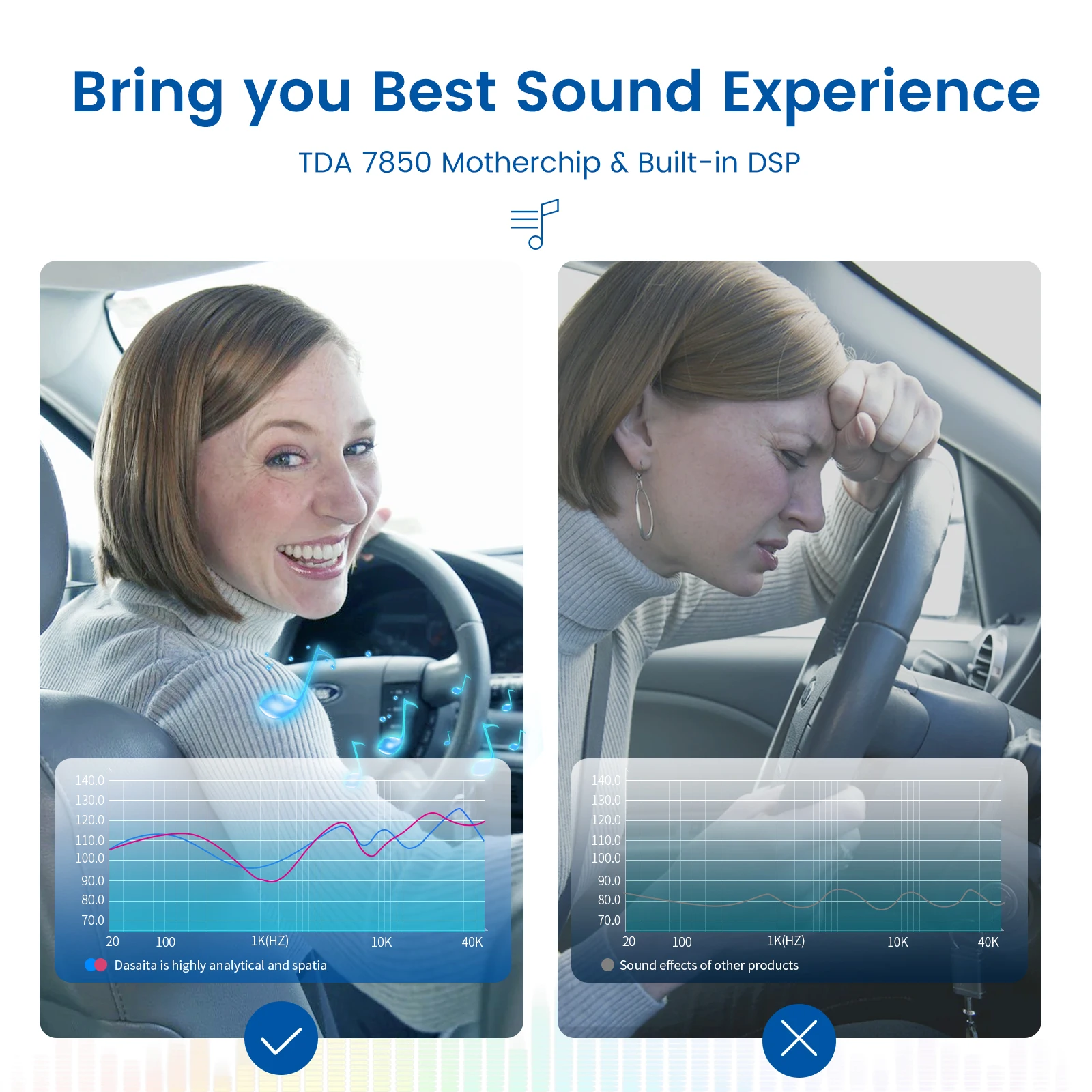 Стереофонического сигнала для автомобиля с сенсорным экраном имеет встроенный DSP 15-полосным эквалайзером и ST7708 4*50 Вт усилитель выход. Несколько вариантов настройки: Pop, Rock, Jazz, Classic, Flat, User, Voice и т. д.