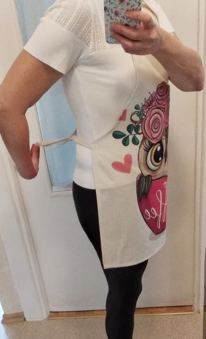 Пришел меньше чем за месяц. Качество и цвет под лен, с большой добавкой синтетики, что и к лучшему, - хорошо стирается, гладится, дольше прослужит. Я большая - 100/90/108 , рост 175, вес 74, но мне не мал. Сшит аккуратно, строчки ровные, нитки не торчат, запаха нет, что для китайцев удивительно, они и вечернее платье могут прошить кривыми строчками. Принт качественный, четкий, не расплывчатый, цвета как на картинке. Понравилось, что завязки сзади длинные, с легкостью "обнимут", и завяжутся на женщине, полнее меня. Несмотря что отзывы не очень, у других продавцов, правда, мне передник понравился, считаю, своих денег стоит, не стыдно и под елочку положить, как довесок к основному подарку.