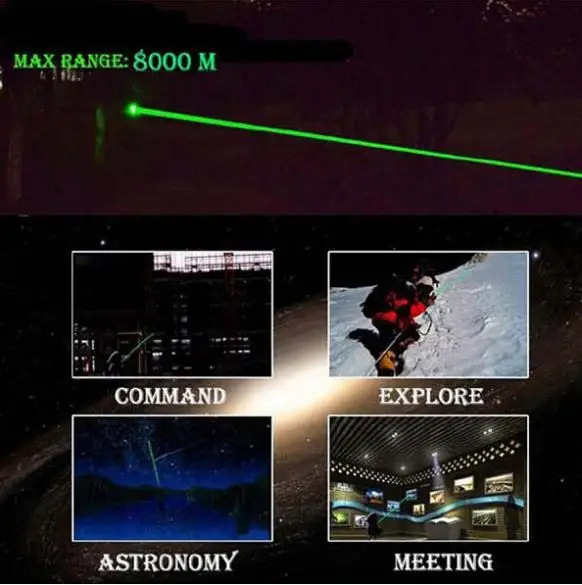 Лазерная ручка 8000 м, 5 мВт, зеленые лазеры, военный Регулируемый ...
