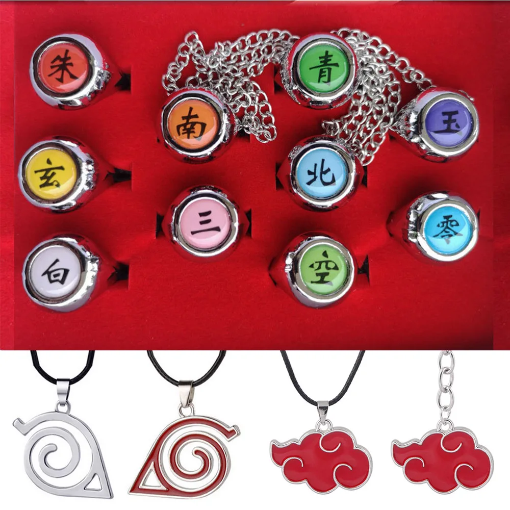 Набор Аниме Наруто кольца фигурка ожерелье Bandai Akatsuki Itachi металлические украшения косплей аксессуар Kawaii Мода Мальчик Детские крутые подарки
