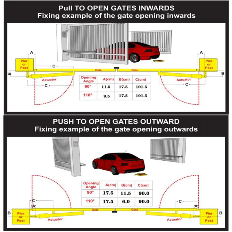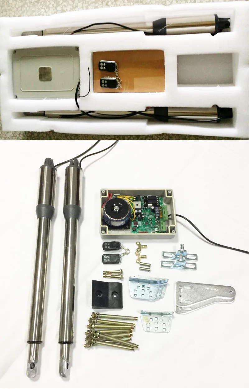 Двойной оператор распашных ворот предназначен для жилых/коммерческих применений. Сохраняйте тепло и сухость в вашем автомобиле. Этот двойной распашной нож будет выдерживать двойные распашные ворота длиной до 5 метров (2,5 метра на лист) и весом до кг. (150 кг на лист) Открыватель распашных ворот PKM-101 имеет мощные двигатели 24 В постоянного тока, которые обеспечивают исключительный пусковой момент и функции плавного запуска/остановки. Это способствует увеличению срока службы ворот и оператора, а также надежной производительности. Все поставляемые открывалки для ворот предварительно протестированы и долговечны и имеют 12 месяцев гарантии на полную систему.Эта система открывания распашных ворот с двумя рычагами является надежной, долговечной, двигатель может обрабатывать светильник вые ворота. Операторы распашных ворот PKM-101-это Телескопический привод линейного винтового типа с гладкой конструкцией, изготовленный из нержавеющей стали с корпусом двигателя из литого сплава. Два мотора изготовлены из металла (без пластика, волокна или нейлона).PKM-101 Открыватель распашных ворот оснащен аварийным ручным управлением на каждом актуаторе, чтобы позволить пользователю открывать ворота вручную в случае чрезвычайной ситуации, такой как сбой питания.Полный набор:2 x двигатель затвора постоянного тока, предварительно подключенный к моторным кабелям2 х гаечных ключа2 х пульта дистанционного управления1 панель управления2 x монтажный кронштейн2 x Монтажный кронштейн для ворот1 х Резиновый ограничитель затвора1 x Инструкция по эксплуатацииВыберите подходящую упаковку в соответствии с вашими потребностями. Содержимое указано на изображении выше1. Простота установки и эксплуатации, простое подключение проводного провода.2. Откройте и закройте ворота с помощью пульта дистанционного управления и клавиатуры.3. Функция продвижения времени. При открытии ворот скорость медленная, затем немного быстрая, а при закрытии двери скорость снова медленная.4. В случае сбоя питания, легко отпустите муфту и можете управлять воротами вручную.5. Срок службы около 15 лет.7. Прекратите работу, когда ворота столкнутся с препятствием.8. Максимальный ход стержня 300 мм.9. Мощность двигателя: 24 В постоянного тока 40 Вт10. Скорость работы: 1,6 см/сПреимущества контроллера Операторов Распашных ворот:1. Контроллер может подключать мигасветильник, фотоэлемент, резервную батарею, солнечную систему, клавиатуру и так далее.2. Управление одиночным или двухстворчатым двигателем не является обязательным.3. Можно регулировать время открытия и закрытия двери.4. Можно вводить резервную батарею 24 В постоянного тока. (для этого используется большой контроллер, наш стандартный контроллер имеет небольшой размер.)5. Можно регулировать высокую скорость работы.6. Легко установить дополнительный пульт дистанционного управления, дистанционное управление до 30 шт.