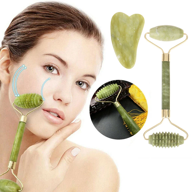 Роликовый массажер для лица с двойной головкой, нефритовый роллер для массажа лица, подтяжка лица, расслабление мышц лица, инструменты для ухода за кожей