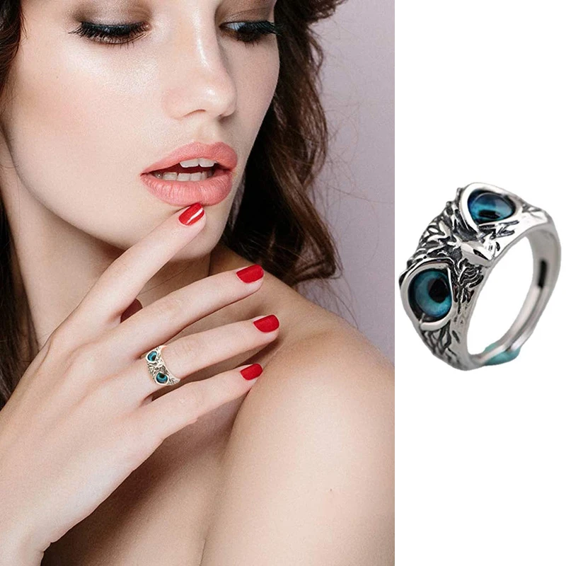 2021 милые винтажные мужские и женские голубые глаза Сова кольцо се...
