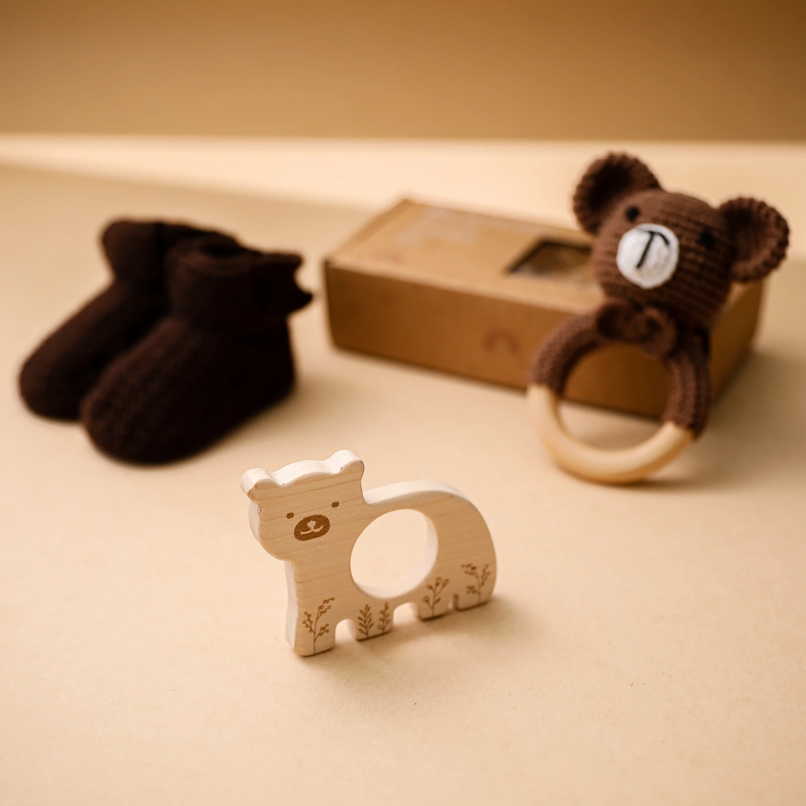 3 шт.компл., Детские деревянные игрушки-погремушки