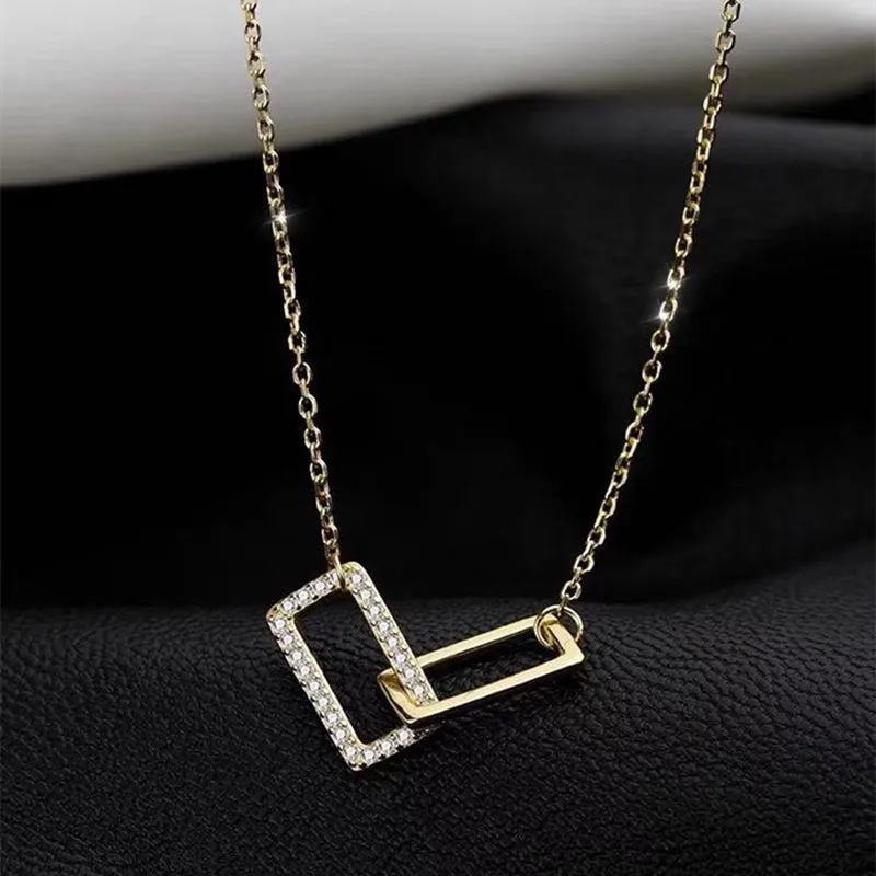 Ожерелье женское из серебра 925 пробы, с двойной квадратной формой,...