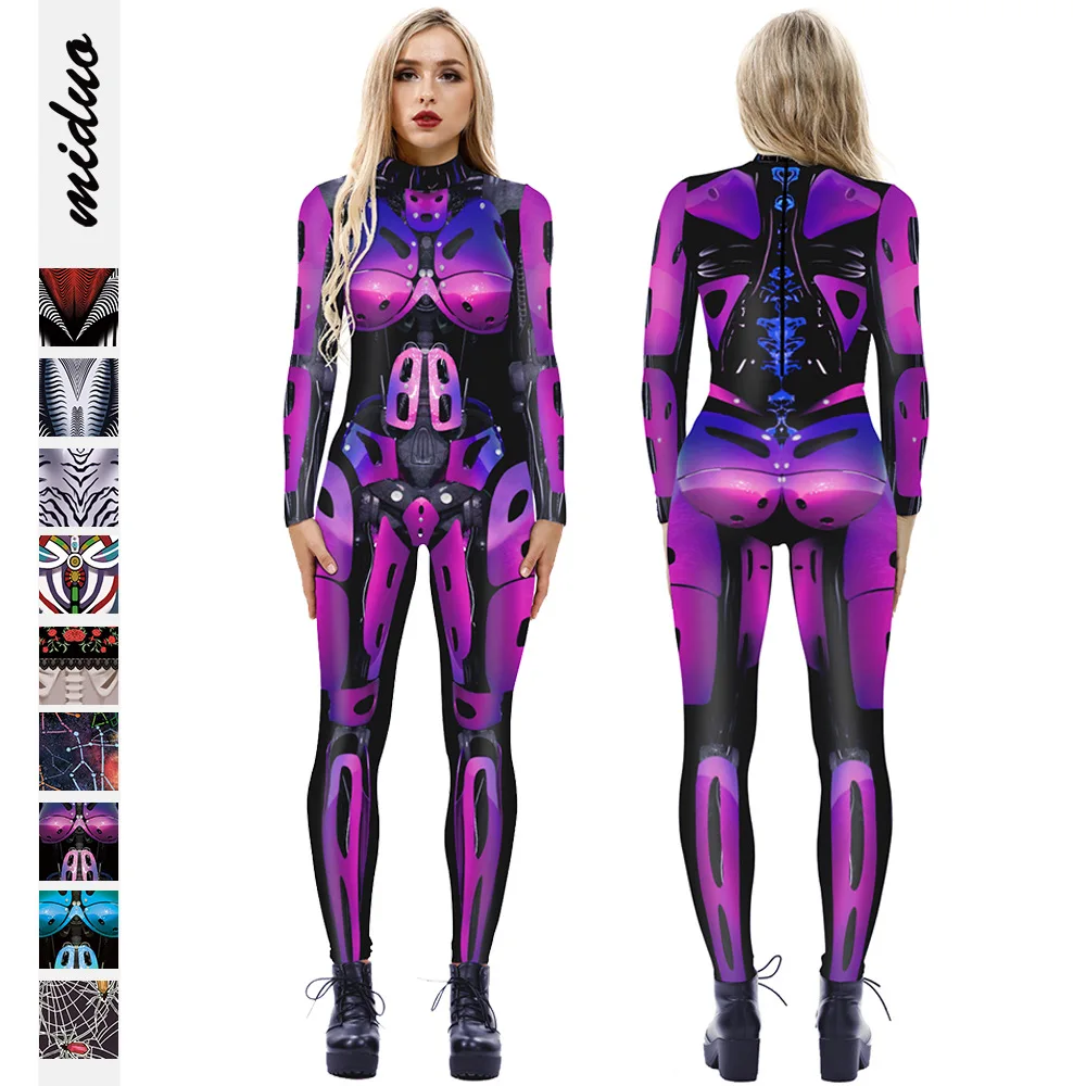 Цифровая облегающая одежда для костюмированной вечеринки с принтом «робот», обтягивающий комбинезон с длинными рукавами на Хэллоуин, костюм для костюмированной вечеринки