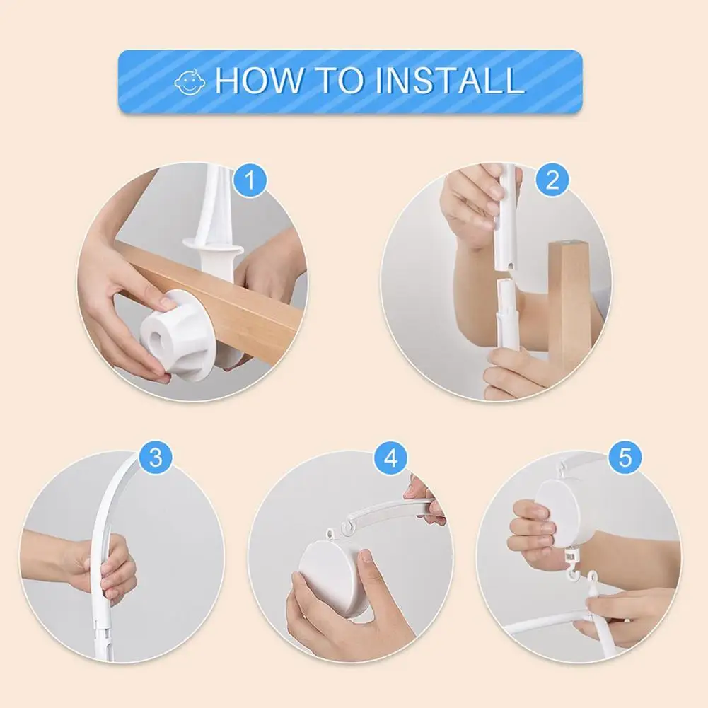 Мобиль-держатель для детской кроватки, с музыкальной шкатулкой, белый, комплект кронштейна для погремушек