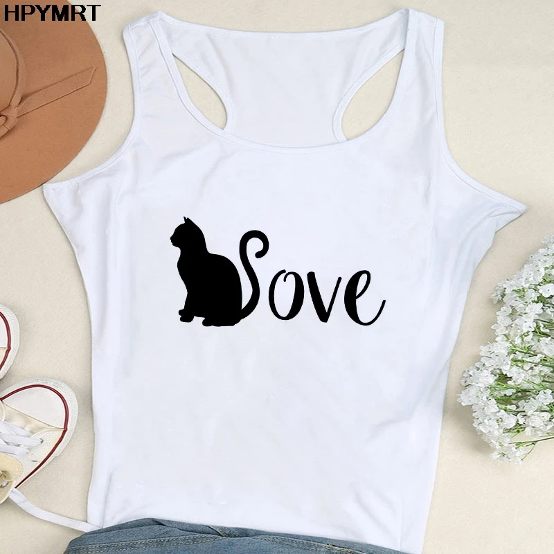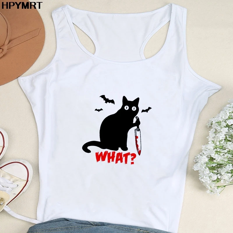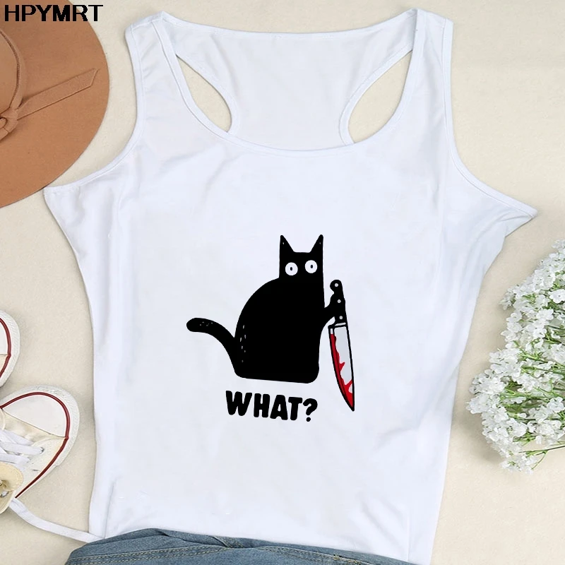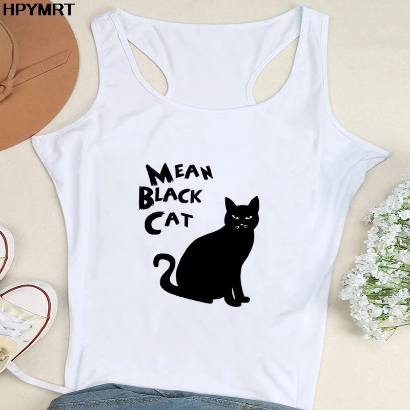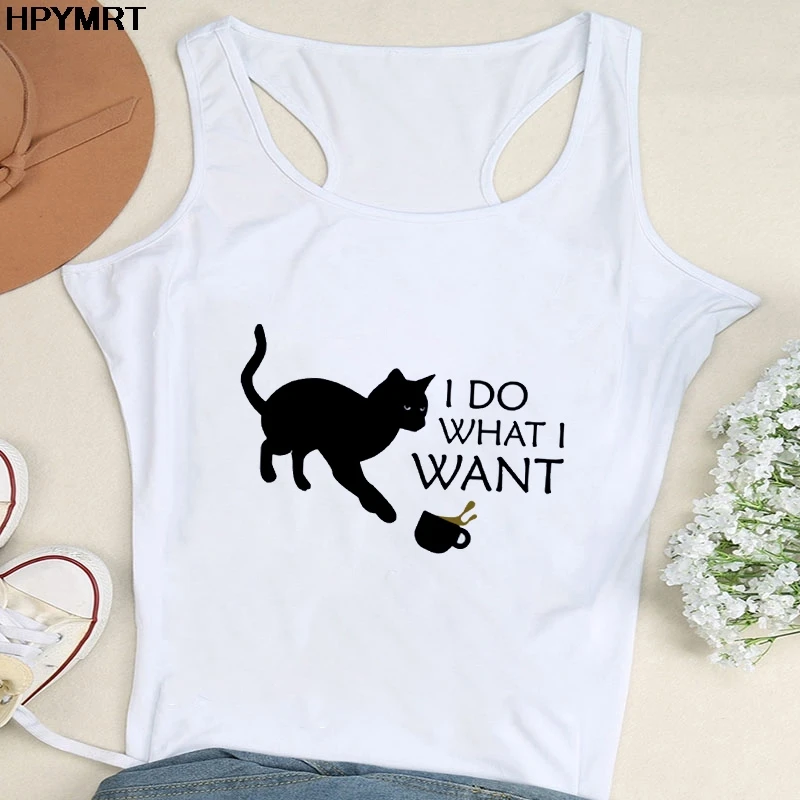 Женские модные летние сандалии, майки без рукавов с круглым вырезом сексуальное платье на бретелях с изображением черного кота, I Do What I Want; С узором в точку, для девушек, повседневные свободные без рукавов 90s женский топ