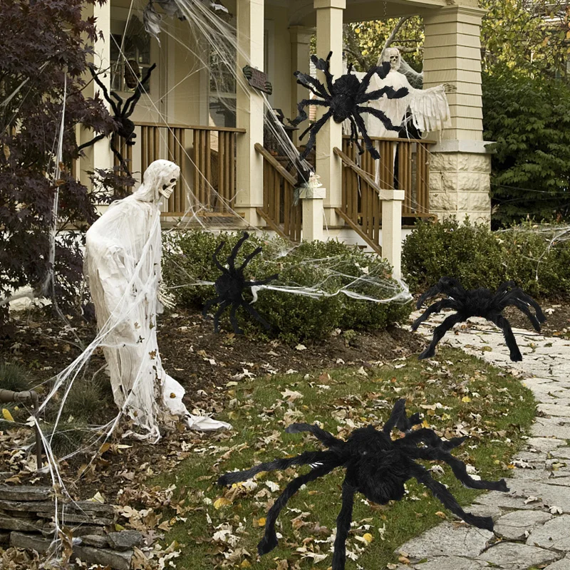 Плюшевый паук: 30 см/50 см/70 смПаутина: 150 см/250 см; Белый, черный