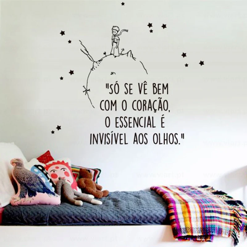 Мультфильм португальский в стиле Маленький принц хорошее стикер на стену в форме сердца для маленьких детская комната Аниме Манга вдохновляющие цитаты Наклейка на стену