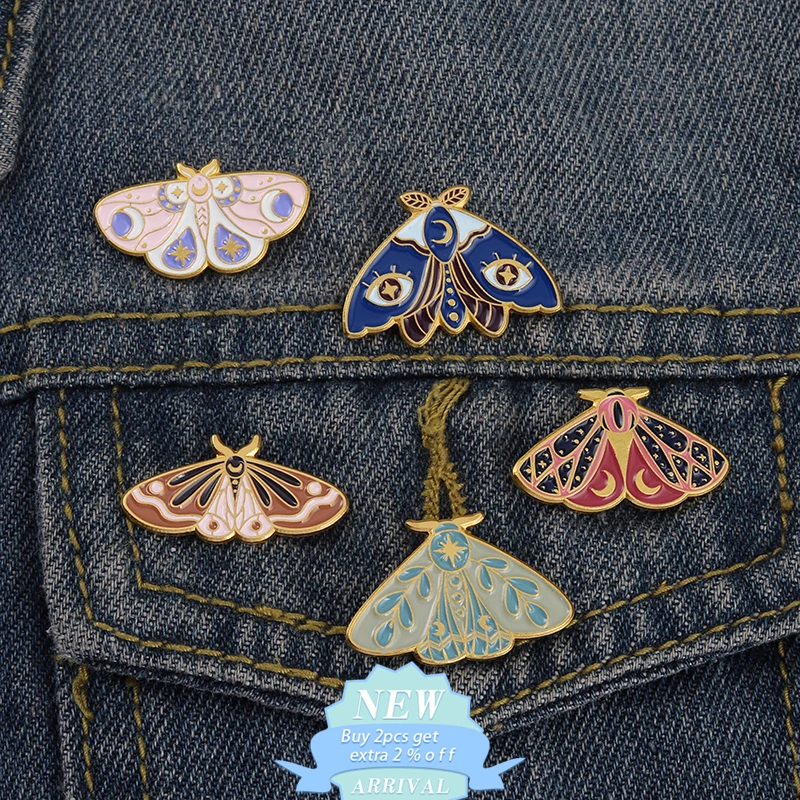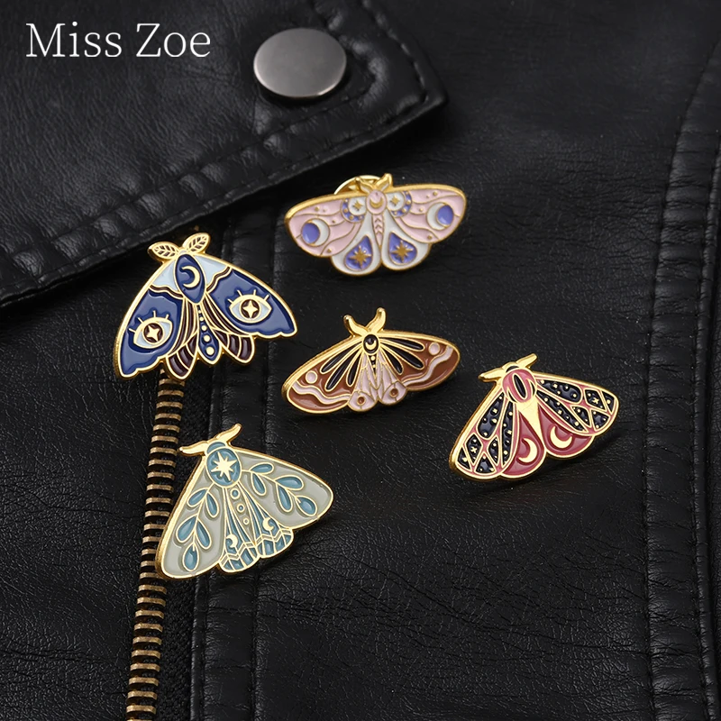 Эмалированные броши в форме бабочки, моли, звезды и Луны, ретро насекомые, золотые значки, животные, ювелирные изделия, подарки для женщин и девушек, оптовая продажа