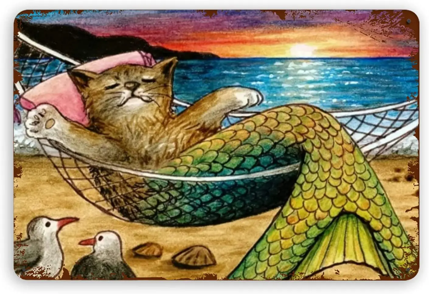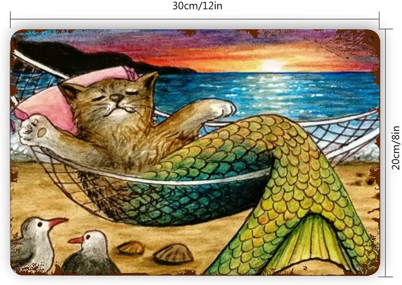 Винтажный металлический люк жестяной знак украшение на стену-Русалка рыба Кот пляж Чайка-Забавный модный гараж жестяной знак на стену классический 20x30 см