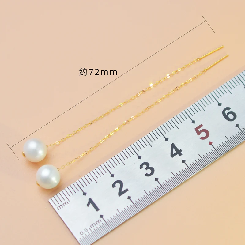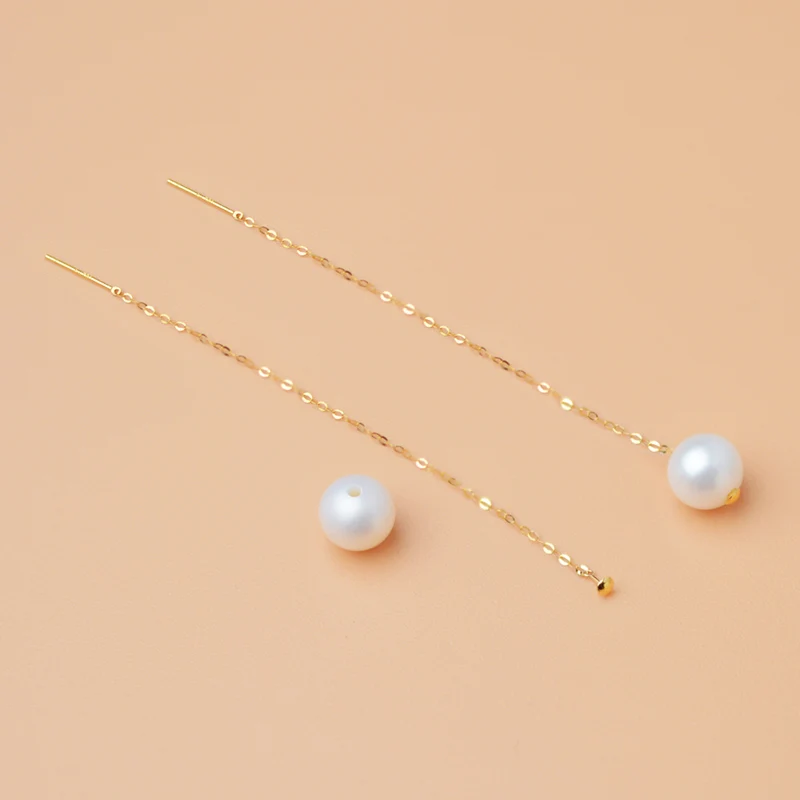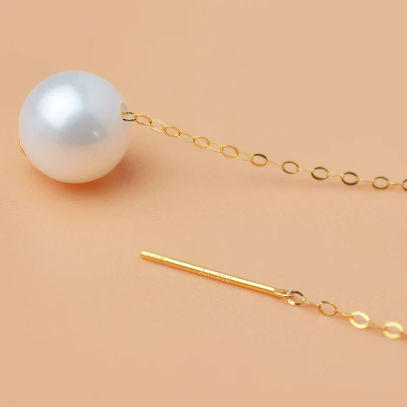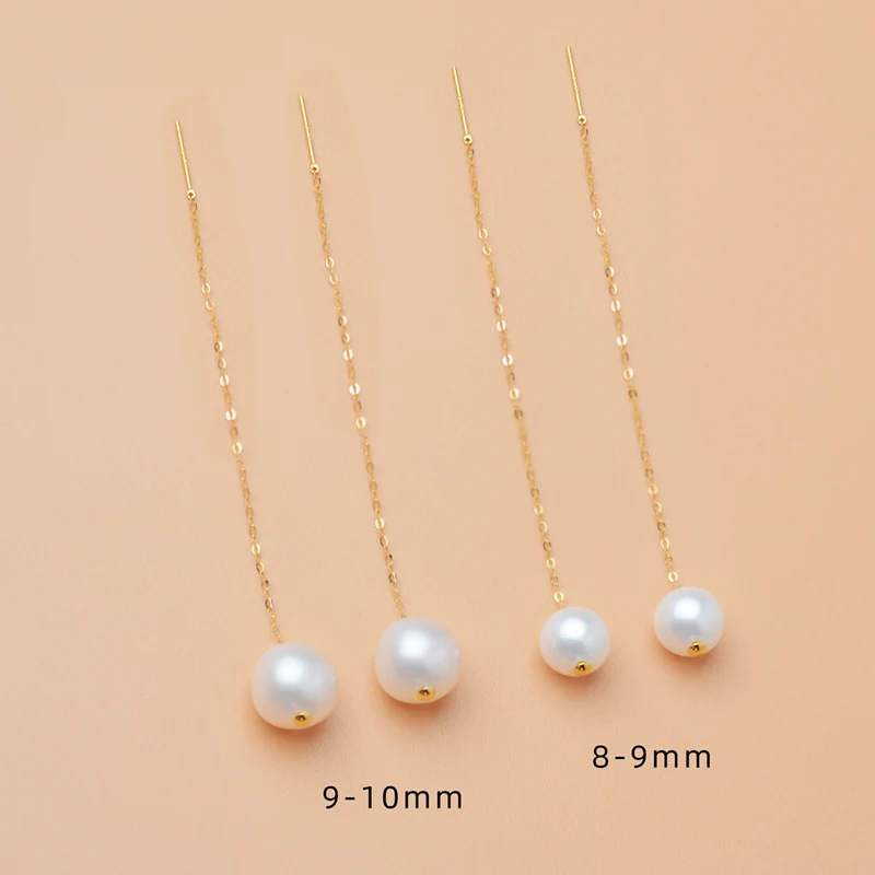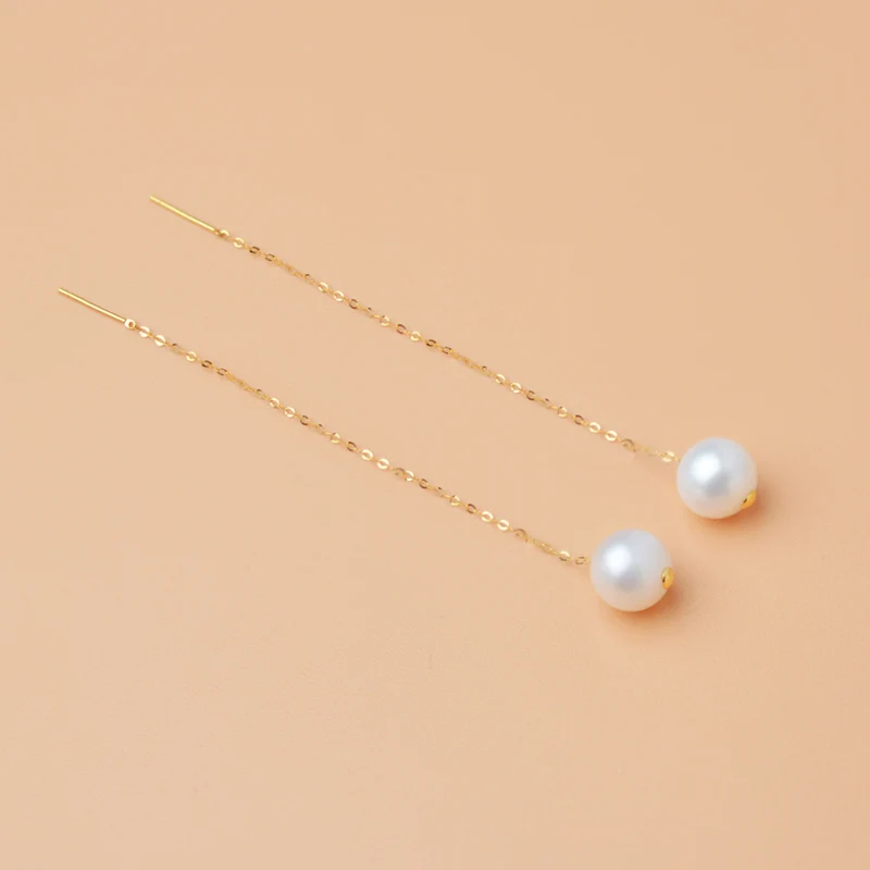Серьги-подвески женские из 18-каратного золота с натуральным пресноводным жемчугом, E366