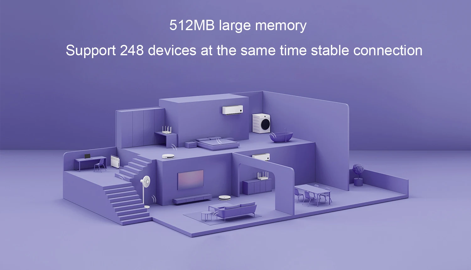 Он может автоматически обнаружить неинициализированные смарт-устройства Xiaomi вокруг вас и завершить доступ к сети с помощью ключа приложения Mijia. В то же время, он поддерживает автоматическую синхронизацию большой памяти 512 Мб, поддерживает 248 устройств, и устройства подключены стабильно одновременно