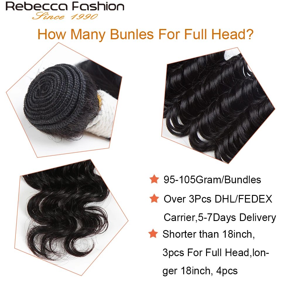 Ребекка Бразильские глубокие волнистые волосы пучки с закрытием Rem...