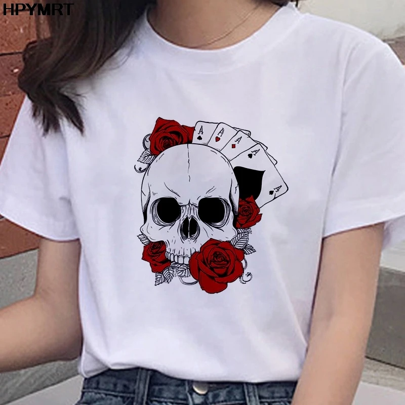 Модный Топ Женская футболка с принтом скелета Harajuku футболка жен...