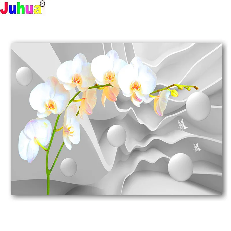 DIY 5D камни в форме ромбаНабор для рисования с круглыми камнями и полотном живопись "белое платье с цветочным рисунком" 3D Вышивка крестом Алмазная мозаика орхидеи ручной работы хобби