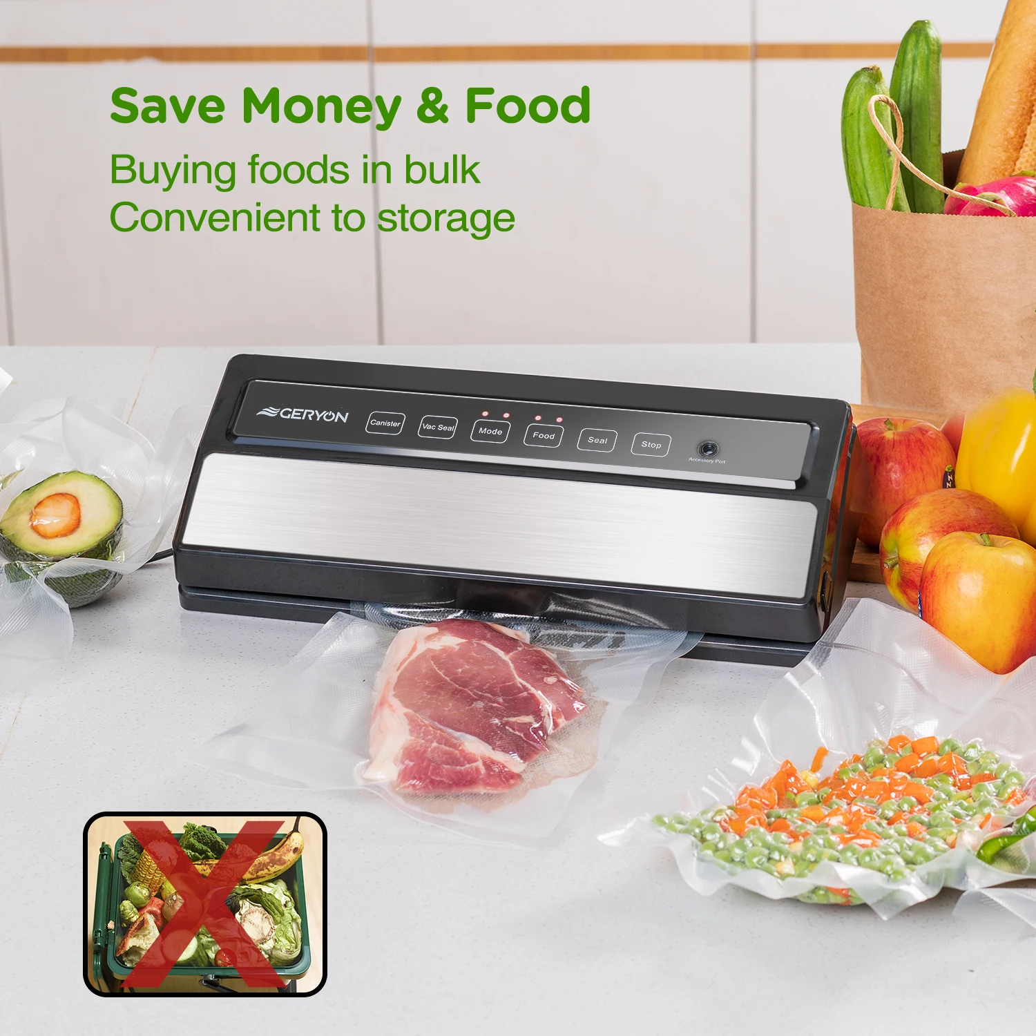 Бытовой вакуумный упаковщик GERYON с вакуумными пакетами в рулоне, вакуумная упаковочная машина для пищевых продуктов