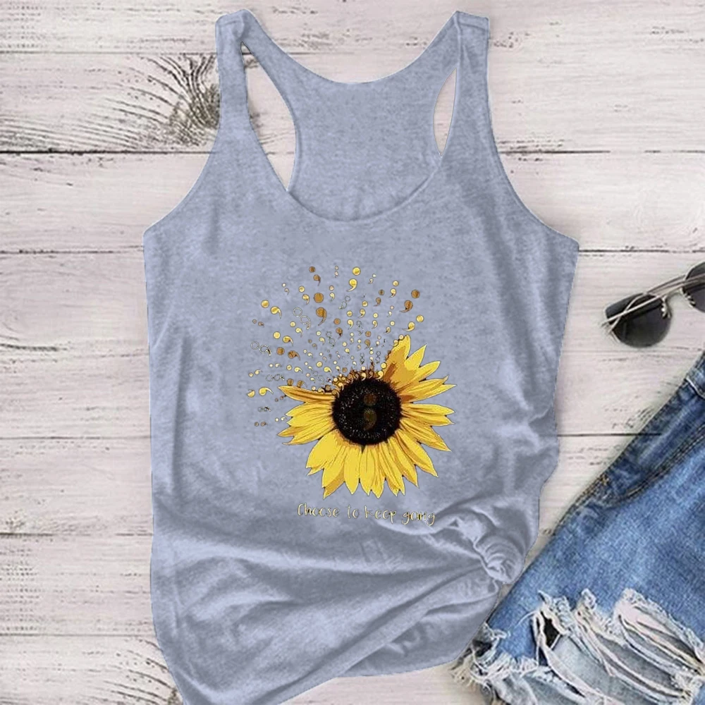 Choose To Keep Going Sunflowers Print Tank Tops Women