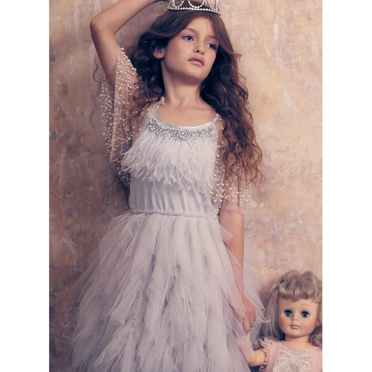 Платье принцессы на бретельках с бисером и перьями для девочек-подростков, праздвечерние платье, пышные платья для девочек-подростков