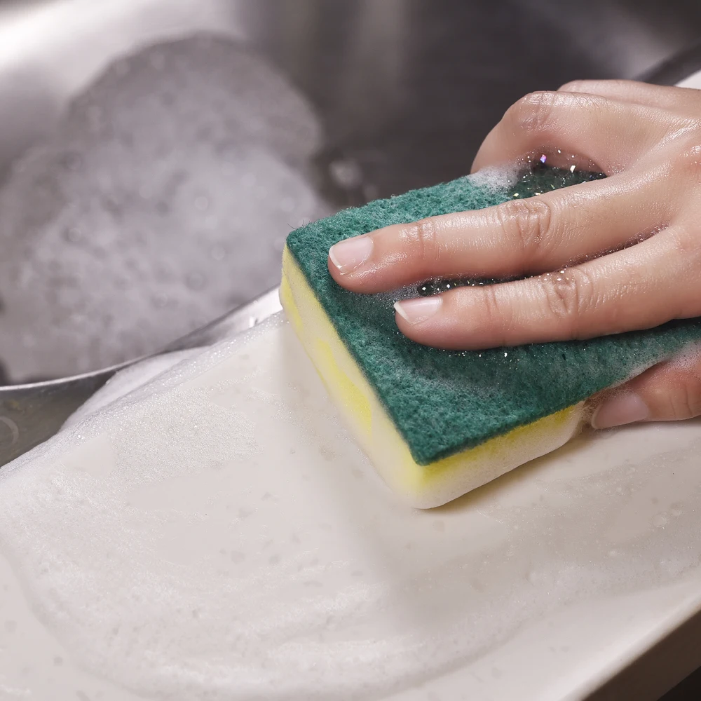 Тонкий материал, боюсь нажимать на губку может лопнуть.
