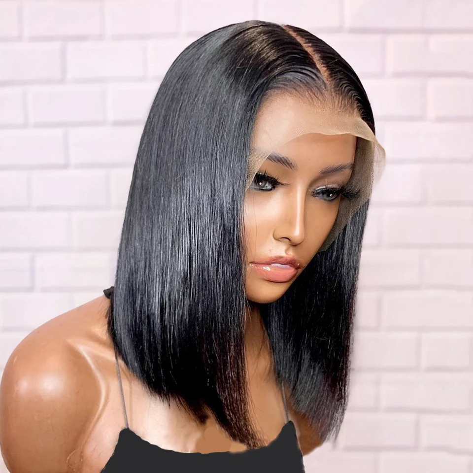 Женский парик с коротким вырезом, коротким ворсом и средней частью, 180%