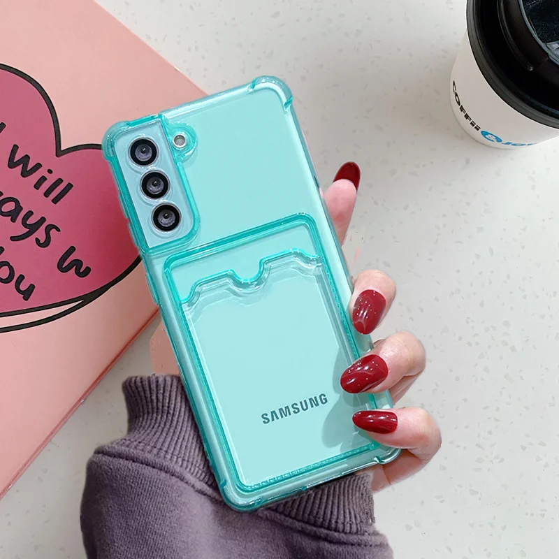 Прозрачный чехол для телефона с отделением для карт для Samsung A52 A72 A32 A42 S21 S20 S10 Plus Note 20Ultra A71, мягкая задняя крышка с отделением для карт