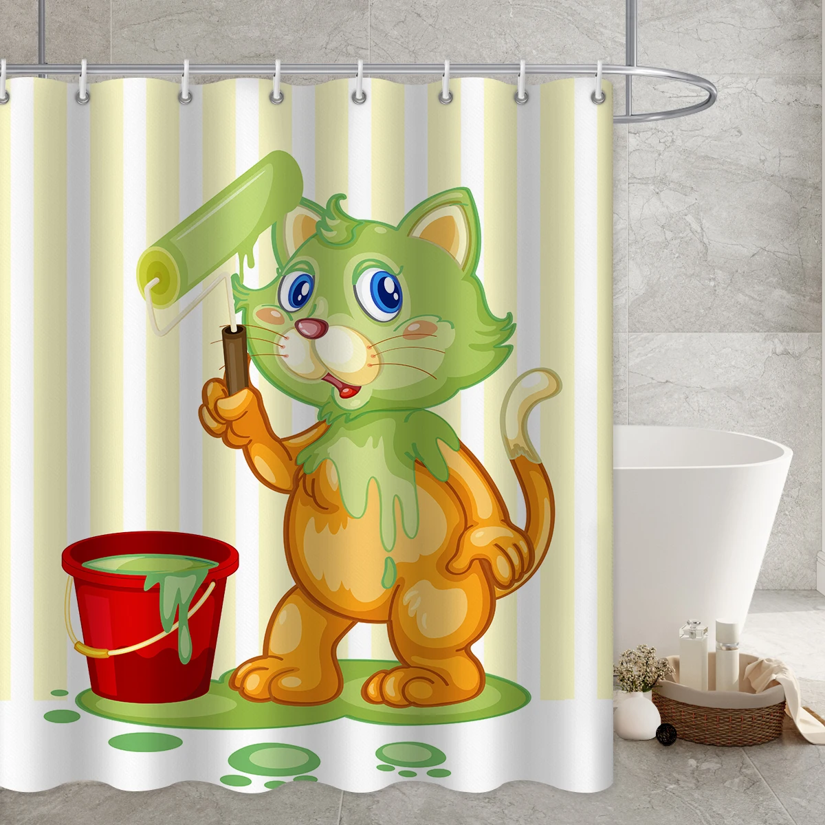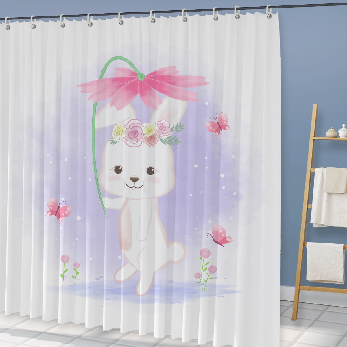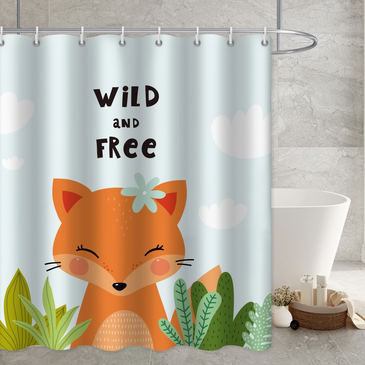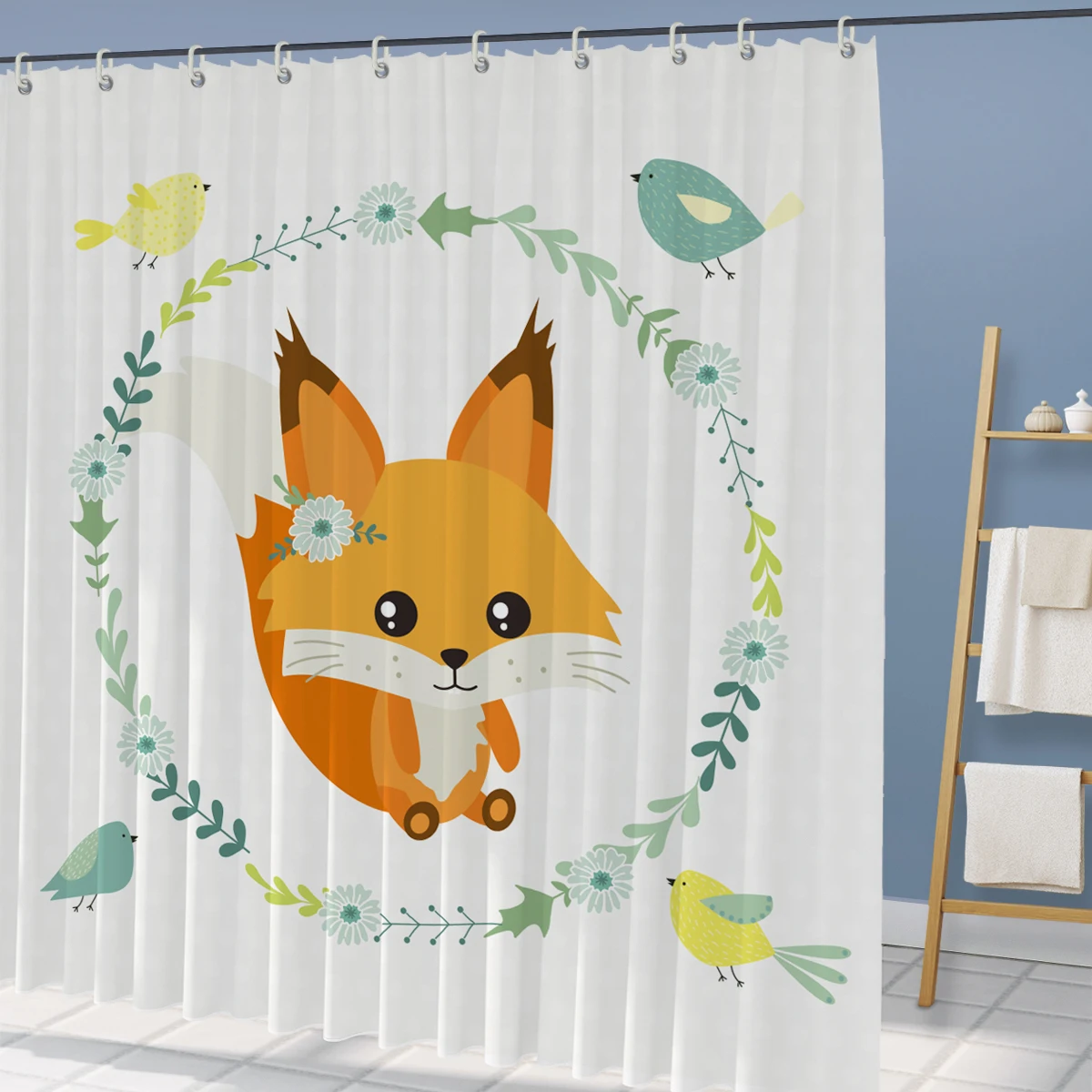 Душевая занавеска с принтом дикой природы, водонепроницаемый шторка для ванной комнаты, в стиле Duschvorhang, с изображением кота и лисы, кролика, s-образные декоративные занавески с крючками