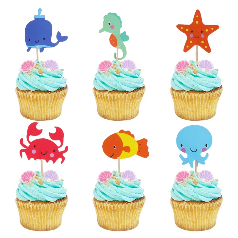 24 шт. океан морских животных для торта с формой гиппокампа, морская звезда рыбы флажки для торта под морской русалки тематическая вечеринка на день рождения торт украшения