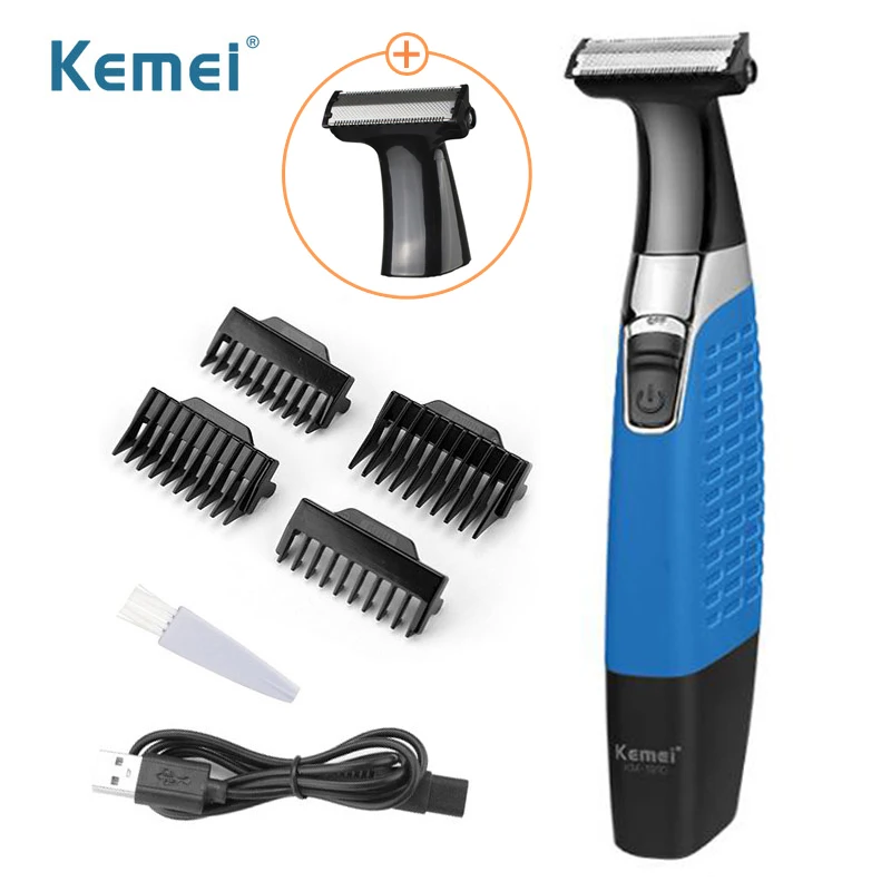 Триммер для всего тела мужской, перезаряжаемый через USB, с одним лезвием 47D, Kemei KM-1910, электробритва