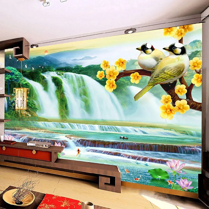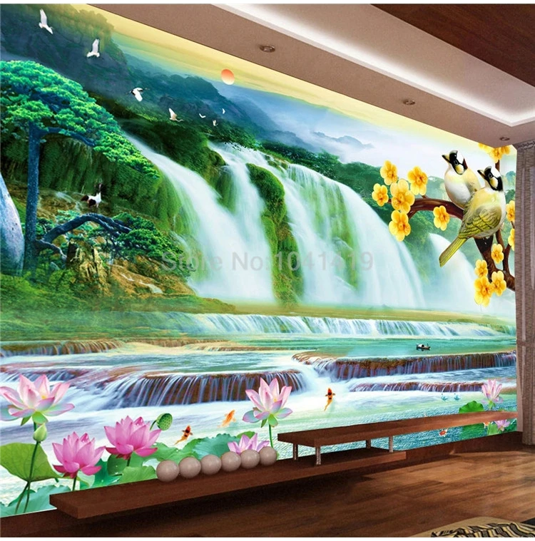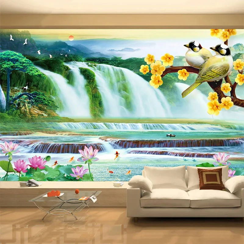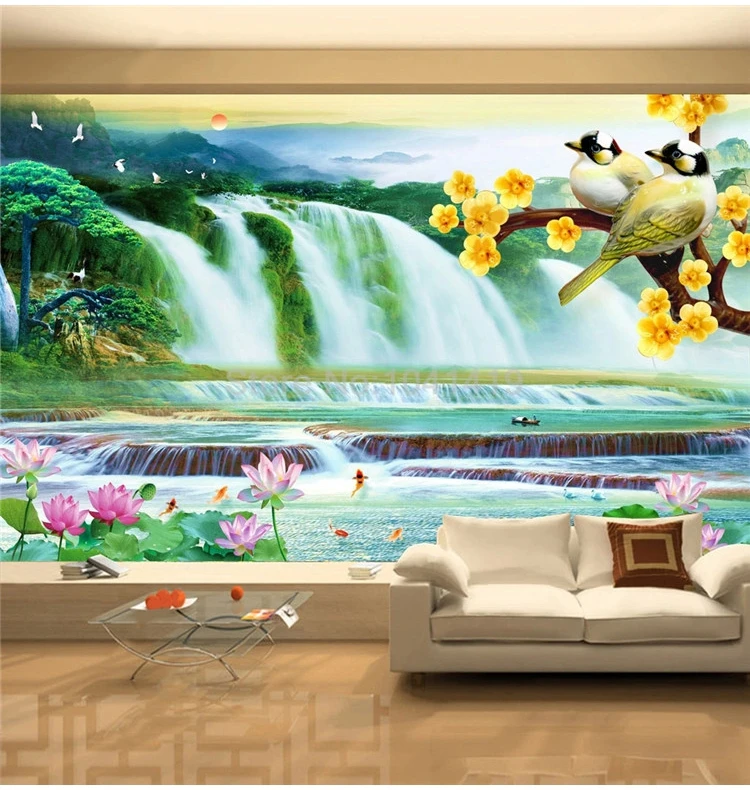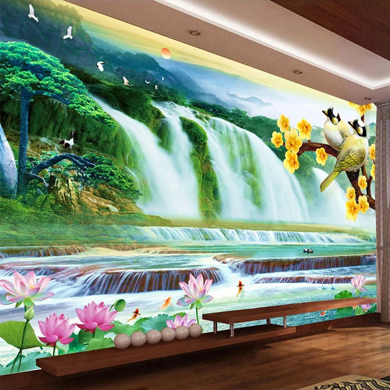 Пользовательские 3D настенная классика природа пейзаж водопад пейзаж фото обои Гостиная ТВ диван фон 3D настенная живопись