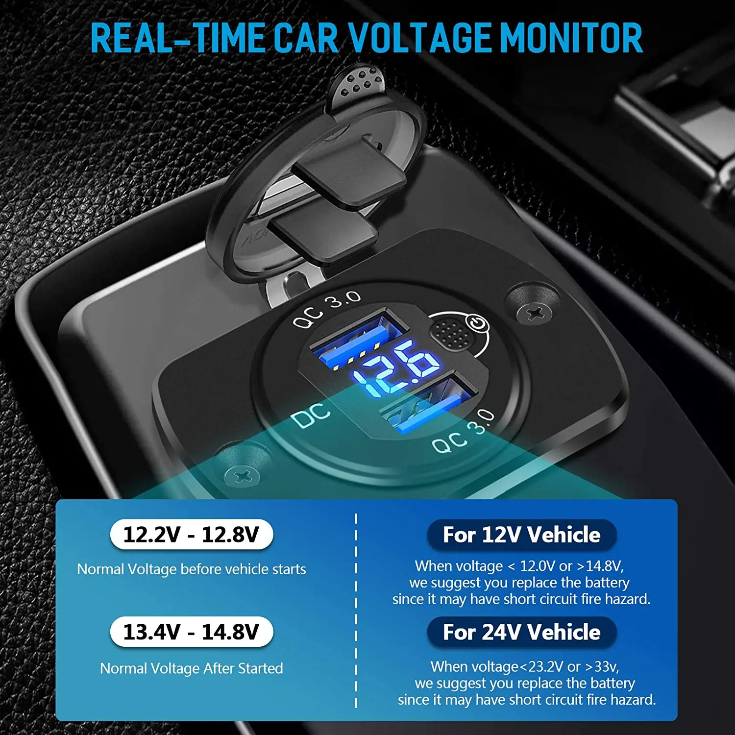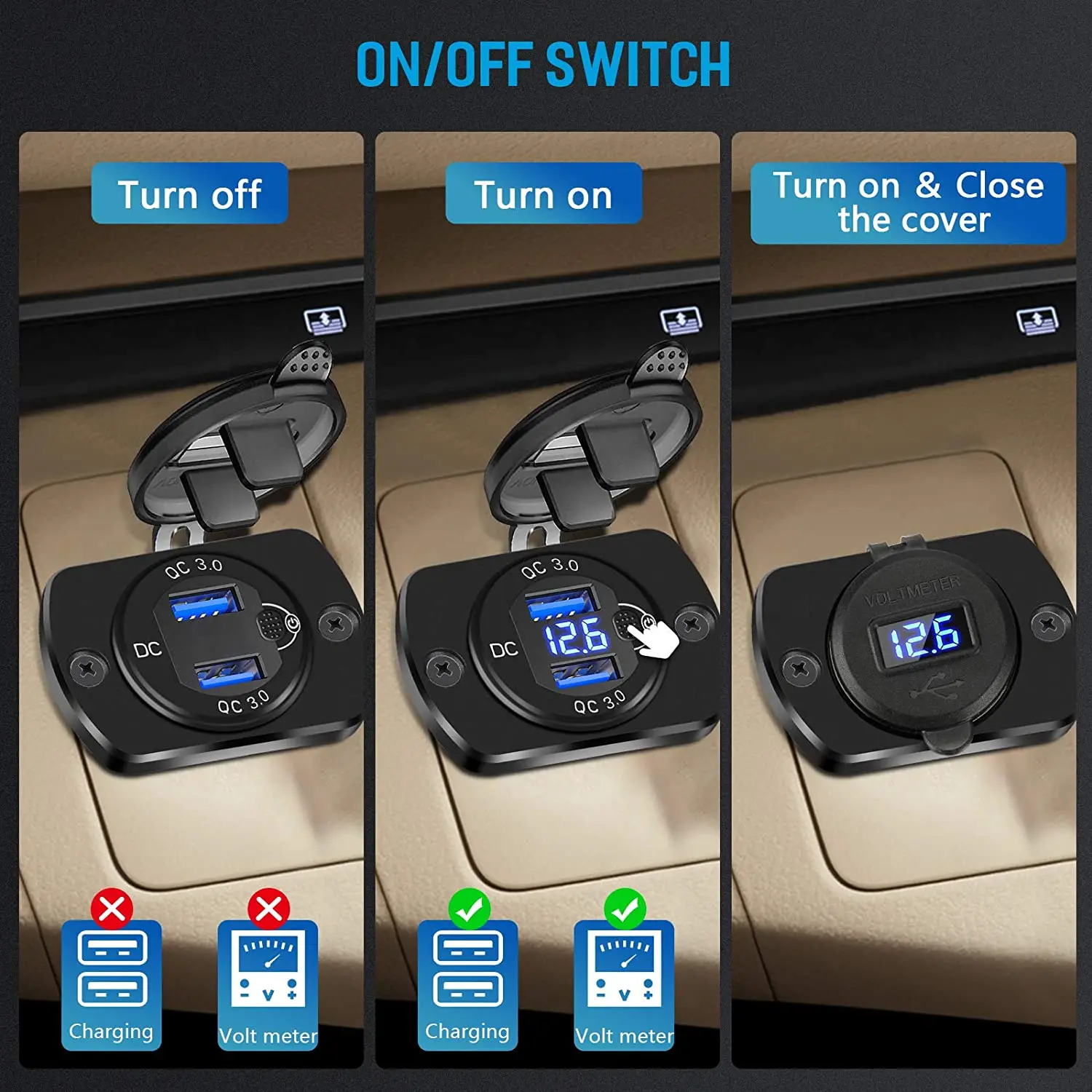 DIY Quick Charge 3,0 устройство для автомобиля с двумя портами USB Зарядное устройство QC3.0 переключатель вольтметра 36 Вт Водонепроницаемый Мощность для машине мотоцикле лодке грузовик гольф-кары