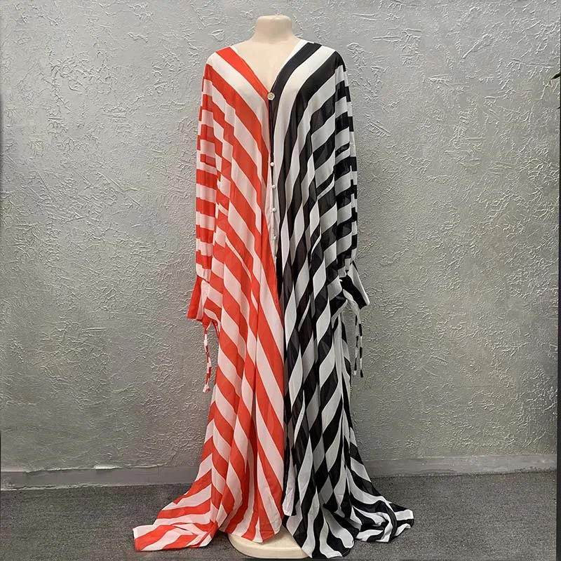 Африканские модные свободные шифоновые платья в полоску от HOUSEOFSD, платье, мусульманское платье, Женская Вечерние няя одежда в европейском и американском стиле
