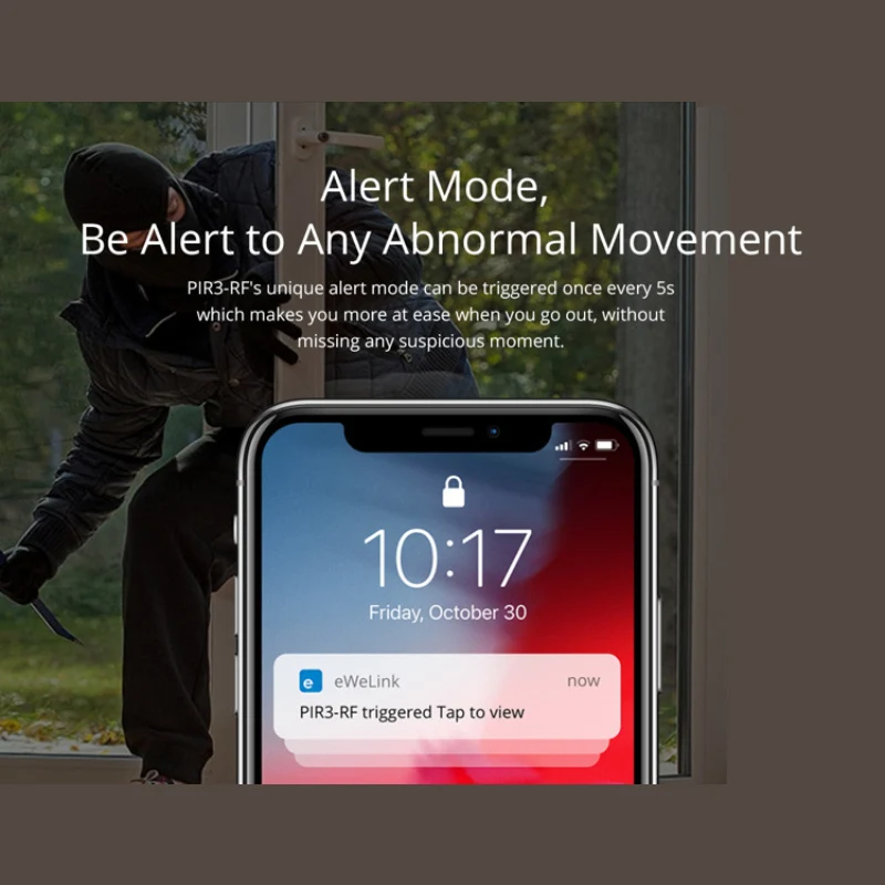 И ваш мобильный телефон получит оповещение. Подключите камеру SONOFF и вы можете посмотреть, кто является нарушителем.