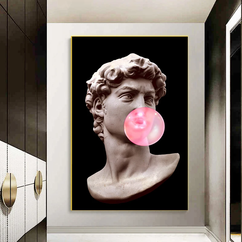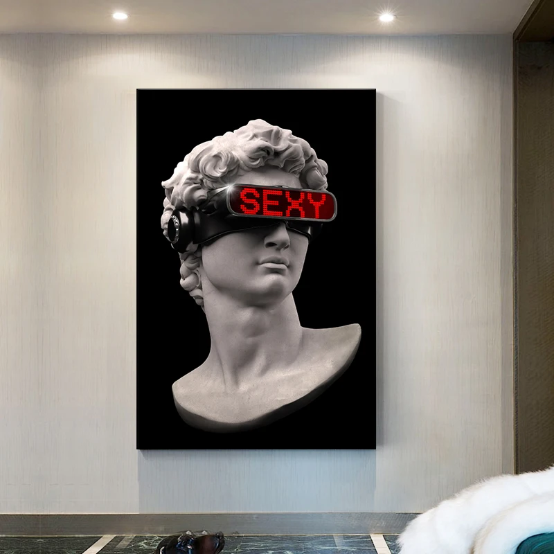 Современный черный фон Vaporwave скульптура Давида художественные плакаты Печать на холсте фотография искусства для домашнего декора