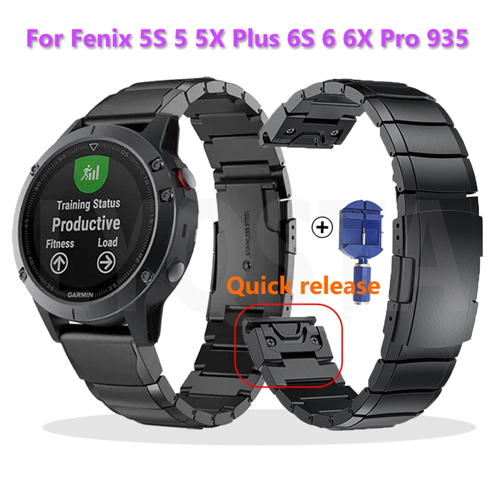 Нержавеющая сталь наручный ремешок для смарт-часов Garmin Fenix 6X 6S 6 Pro 5X 5 5S плюс 3HR D2 MK1 ремни Quick Release 20 расстегиваемый ремешок шириной 22 или 26 мм, ремешок для часов из нержавеющей стали