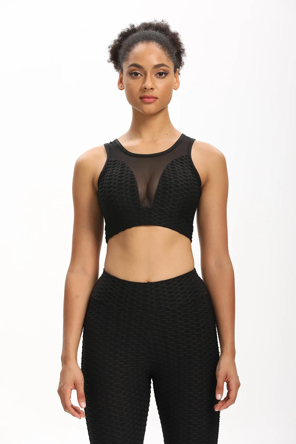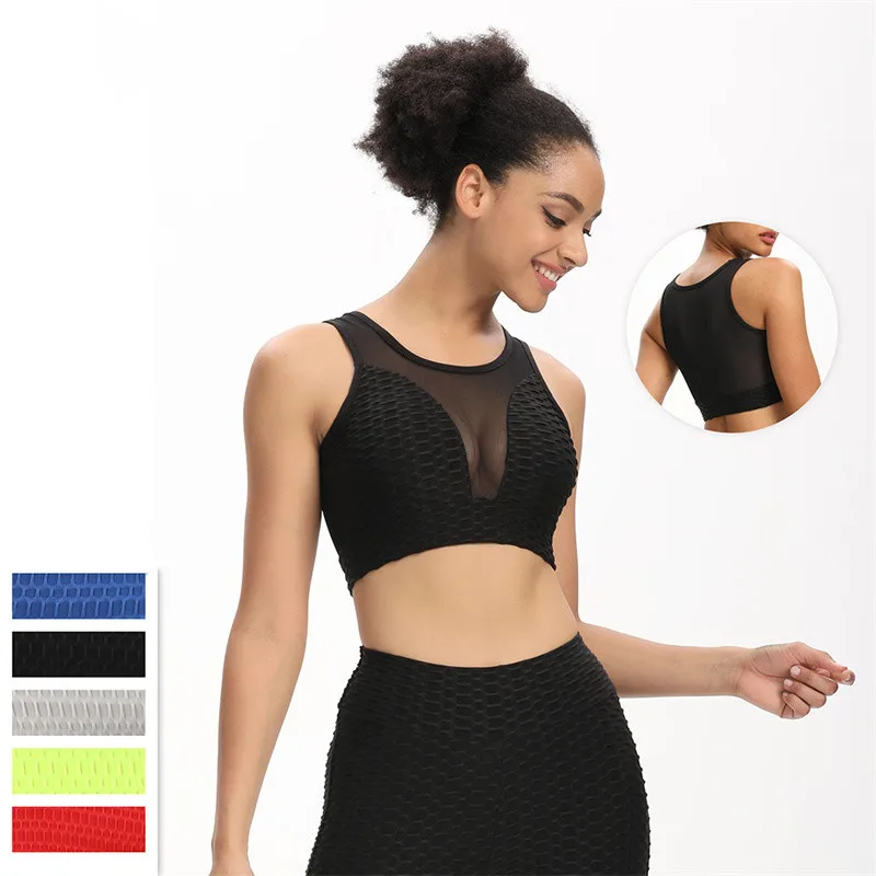 Дышащие спортивные бюстгальтеры, Женский Сексуальный Чистый жаккардовый сетчатый спортивный топ, Укороченный бюстгальтер пуш-ап, спортивная одежда, нижнее белье для йоги
