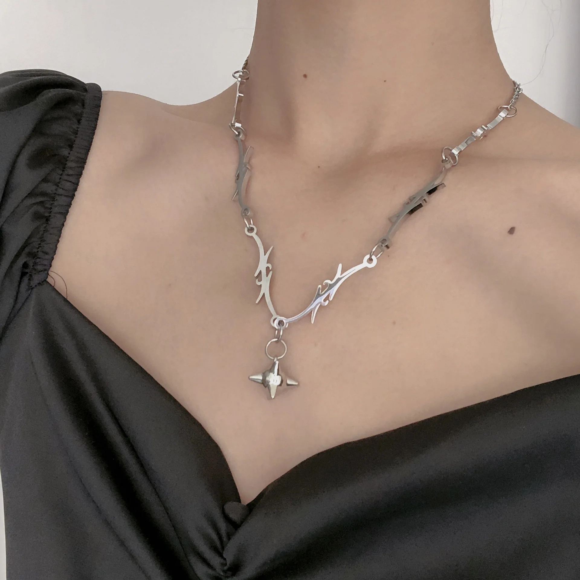 Кулон в виде паука в стиле 90-х, готическое винтажное ожерелье до ключиц с шипами, ювелирное изделие в подарок, 2021