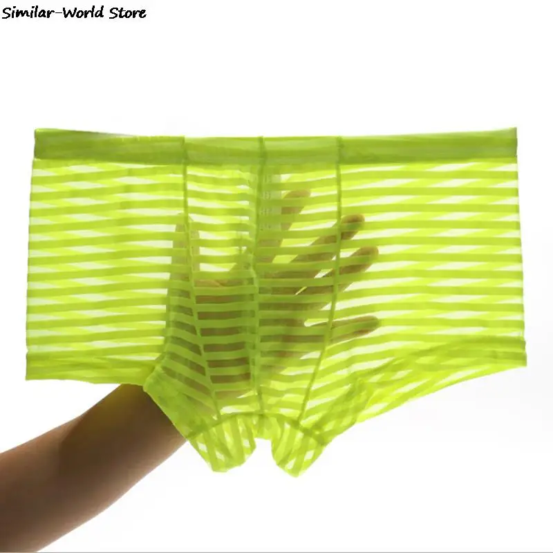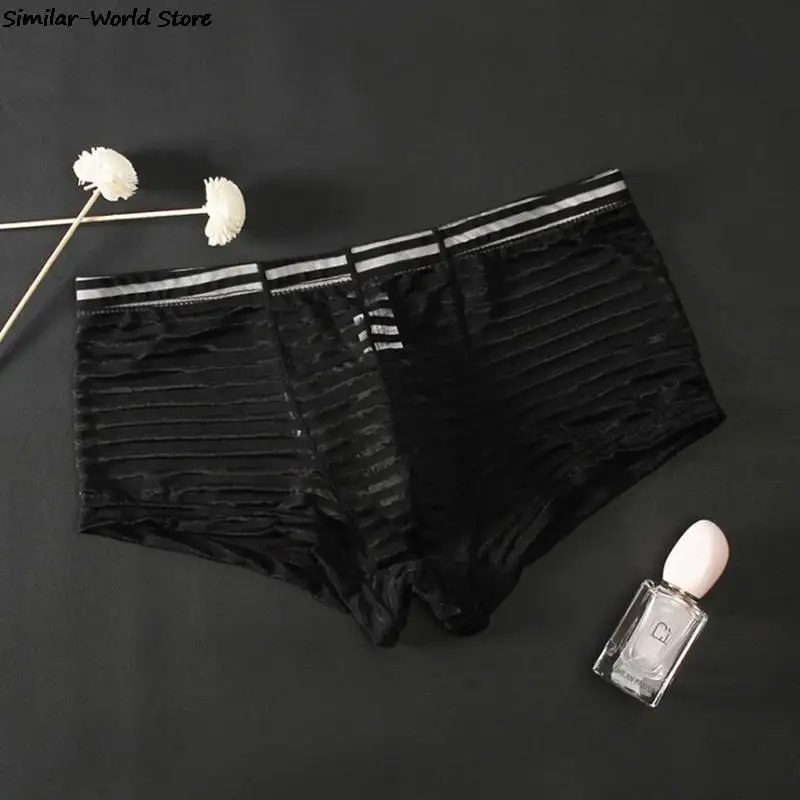 Мужские боксеры 2021, мужское нижнее белье, боксеры, горячие сексуальные полосатые мужские сетчатые Прозрачные Боксеры с заниженной талией, ультратонкие ледяные шелковые сексуальные дышащие трусы