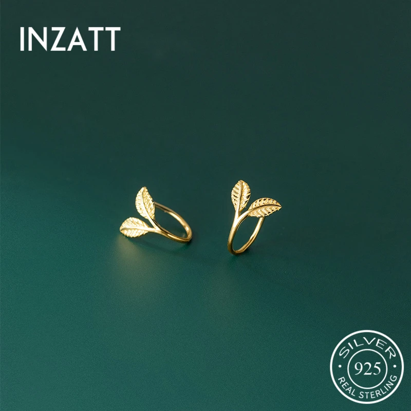 INZATT реальные 925 стерлингового серебра с рисунком растений листьев серьги гвоздики для Модные женские модные туфли в лаконичном стиле ювелирные украшения в стиле панк аксессуары