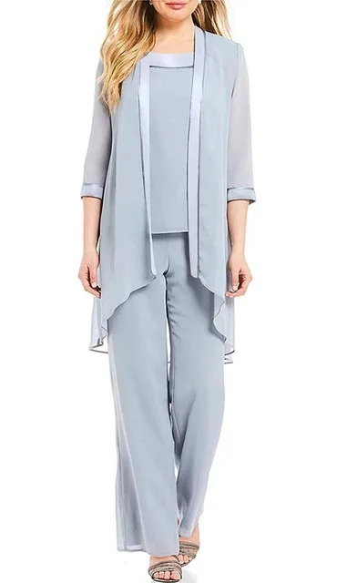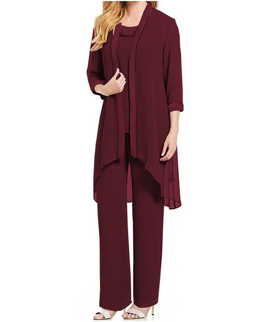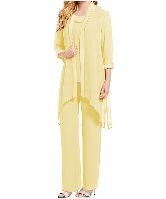 Шифон, платье для мамы; Обувь под свадебное платье для невесты; Женские, набор одежды из 3 предметов, элегантное простой, с короткими рукавами, штаны, костюм с курткой, верхняя одежда для свадьбы 2021