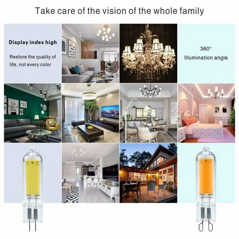 Дорогой друг, спасибо, что пришли в наш магазин!При получении товара, если у вас есть какие-либо вопросы, пожалуйста, свяжитесь с нами. Наш послепродажный персонал решит вашу проблему. И мы надеемся, что вы дадите нам 5 звезд. Наилучшие пожелания!Характеристика:Экономит более 90% электроэнергии.Супер длительный службный срок службы до 50000 часов.Тщательно решить вашу проблему частого замены ламп.Международный стандарт G9 основание, подходит для всех G9 светильник.Экологически чистый, не содержит токсичных веществ, не содержит ртути, не содержит УФ-или инфракрасного излучения.Больше защиты ваших глаз.Характеристики:1. Разъем: G9/G42. Мощность: 7 Вт/9 Вт/12 Вт/15 Вт3. Напряжение: ac220в4. Светодиодный чип Модель: COB светодиодный6. Угол луча: 360 градусов7. Срок службы: 50 000 часов8. Гарантия: 3 года9. Цветовая температура: теплый белый 2800-3200KХолодный белый 6000-6500KМатериал: стеклоCRI>85Ra