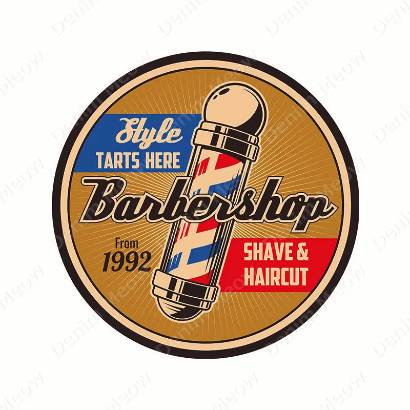 Парикмахерская круглая металлическая вывеска, вывеска для магазина, украшение стены, бритье и стрижка, винтажные круглые тарелки, старый стиль, Ретро плакат N407