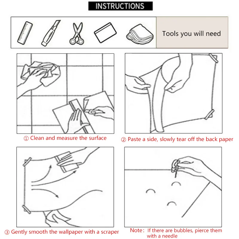 4. Обои, которые вы получите, могут иметь некоторые морщины или оба конца, потому что посылка будет в дороге в течение длительного времени, но это не повлияет на внешний вид после прилипания к стене.
