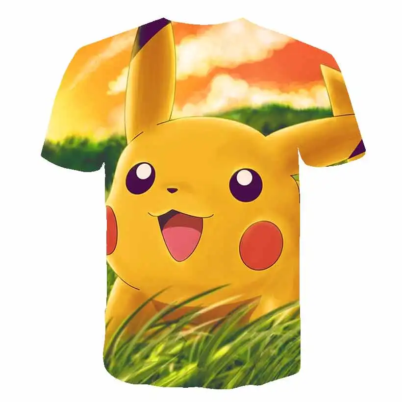 Футболка с принтом покемона для мальчиков и девочек, одежда 3D, повседневная, с круглым вырезом, коротким рукавом, для косплея, веселая, футболка с покемоном 14T 2021