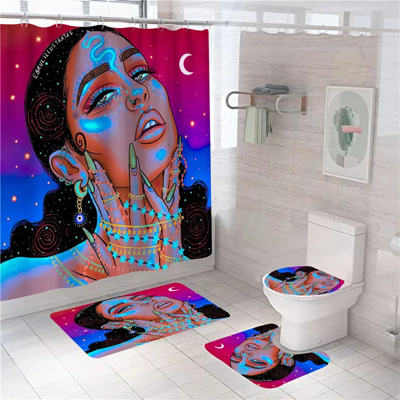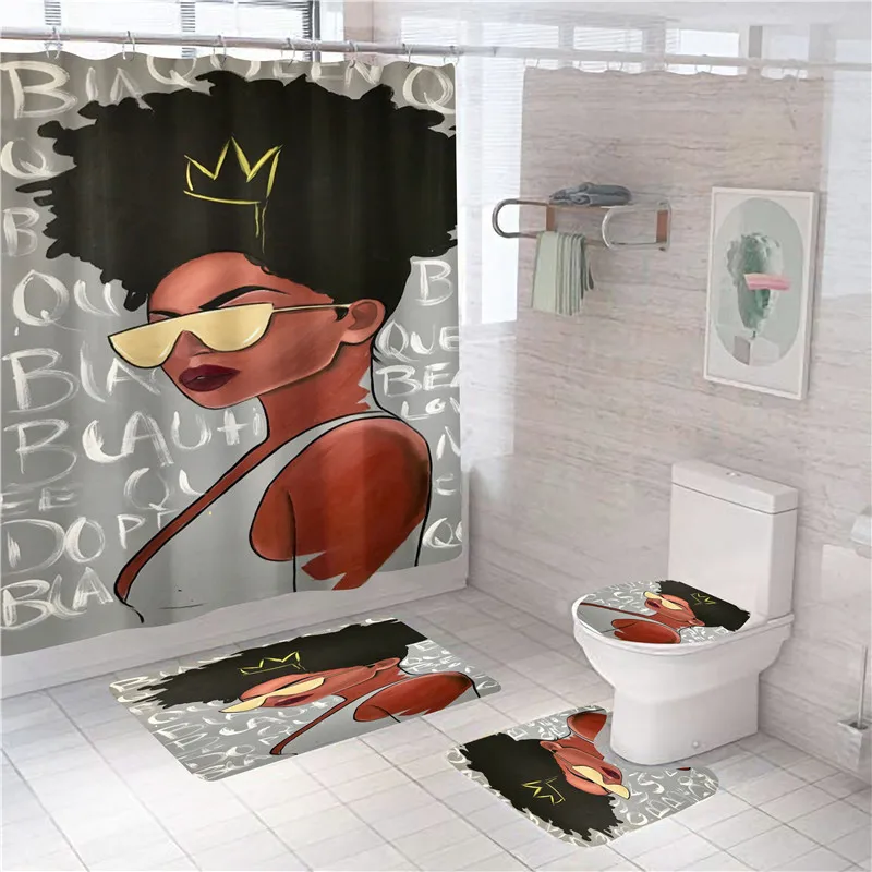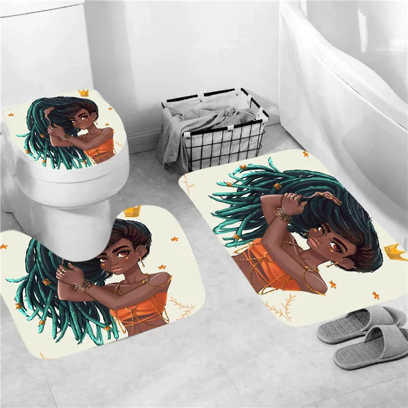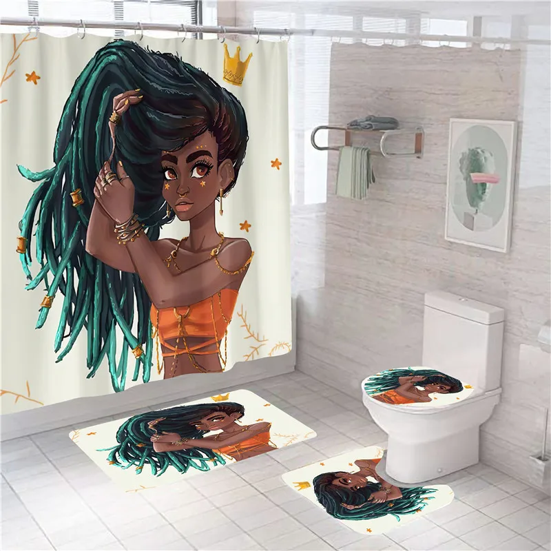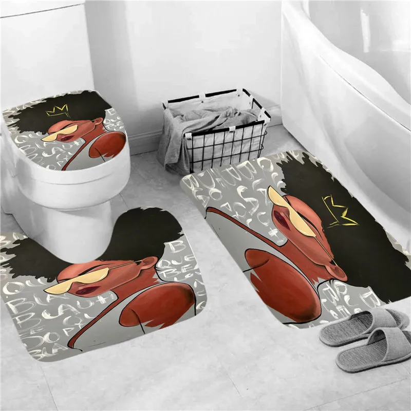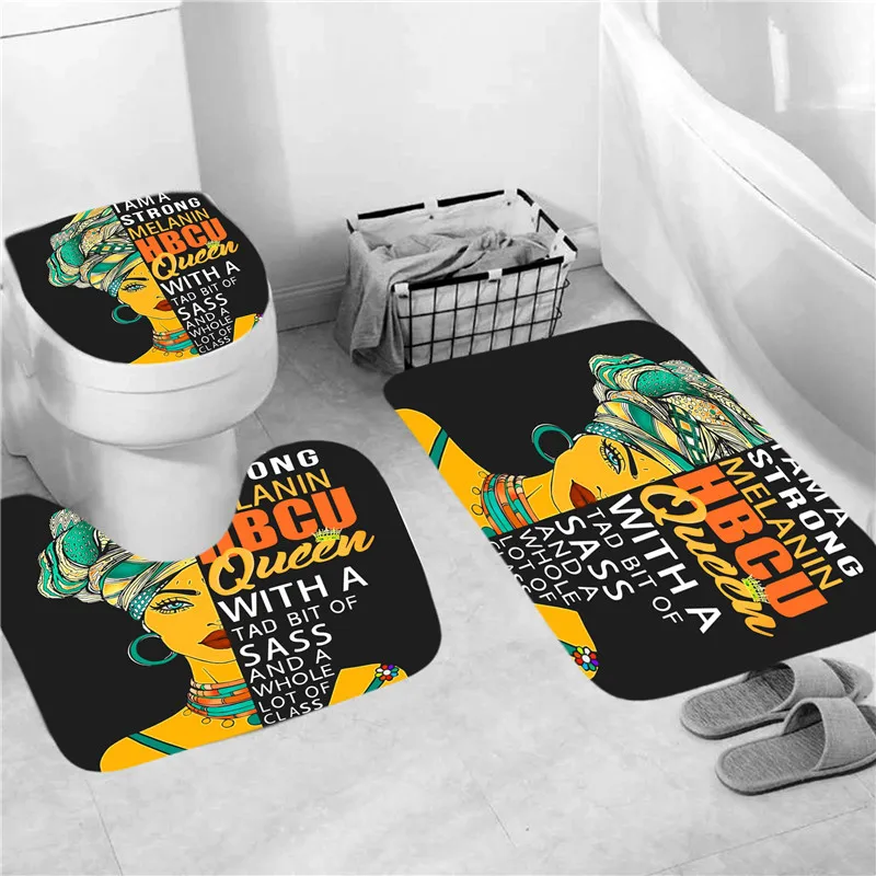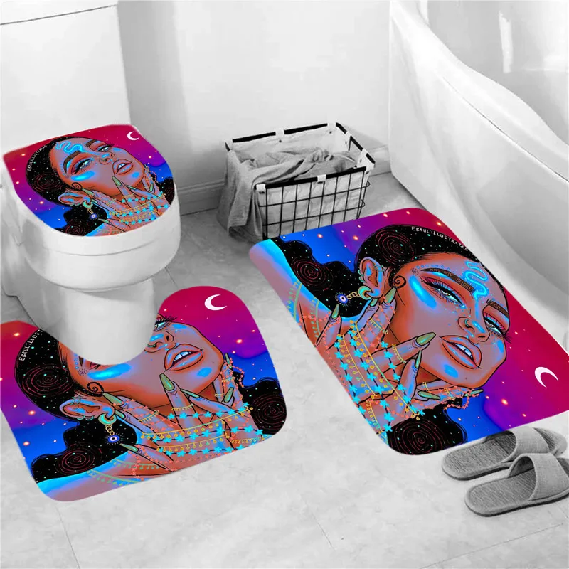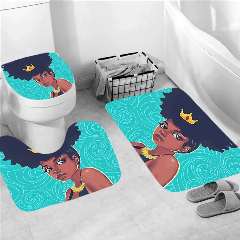 Американские женские 3D занавески для душа, водонепроницаемые черные перегородки для ванной комнаты, мягкий набор ковриков для ванной комнаты, коврик для купания, крышка для туалета