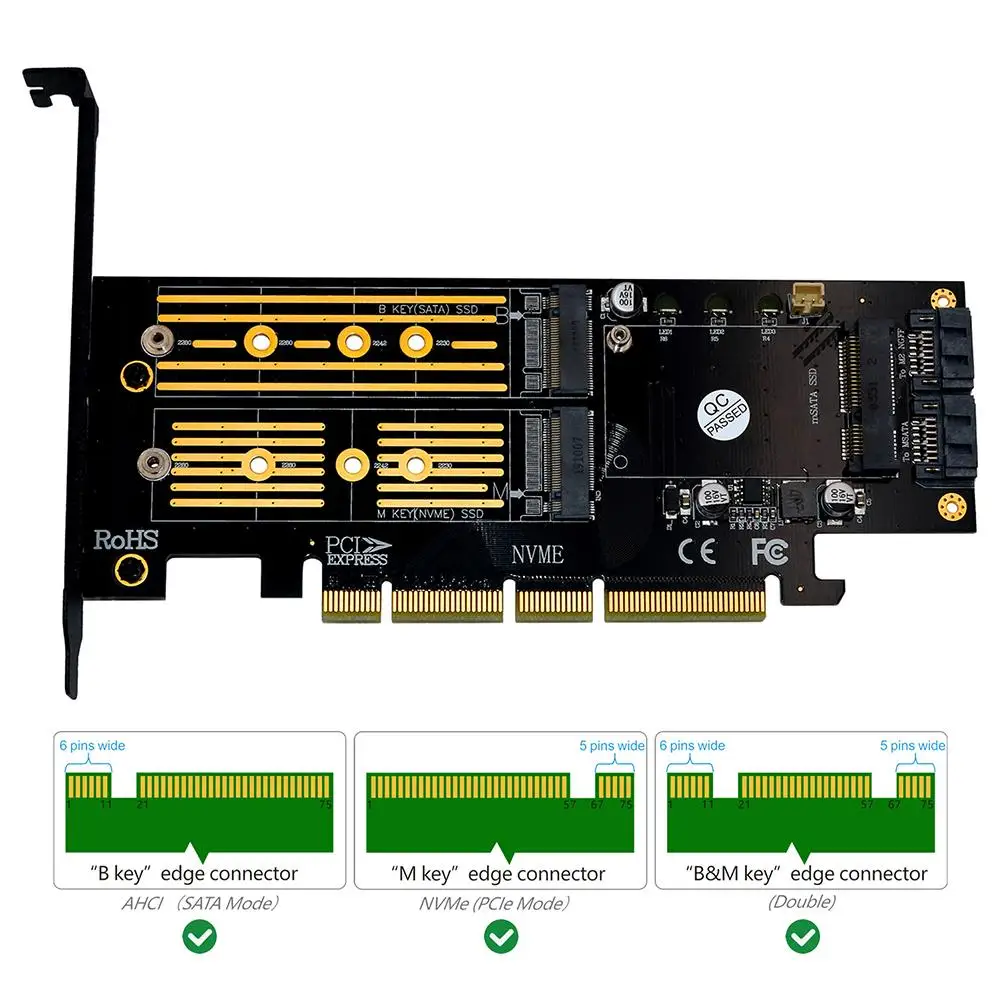 Адаптер 3 в 1 mSATA M.2 PCIE NVMe SSD к PCI-E 3,0 4X SATA 3,0 карта...