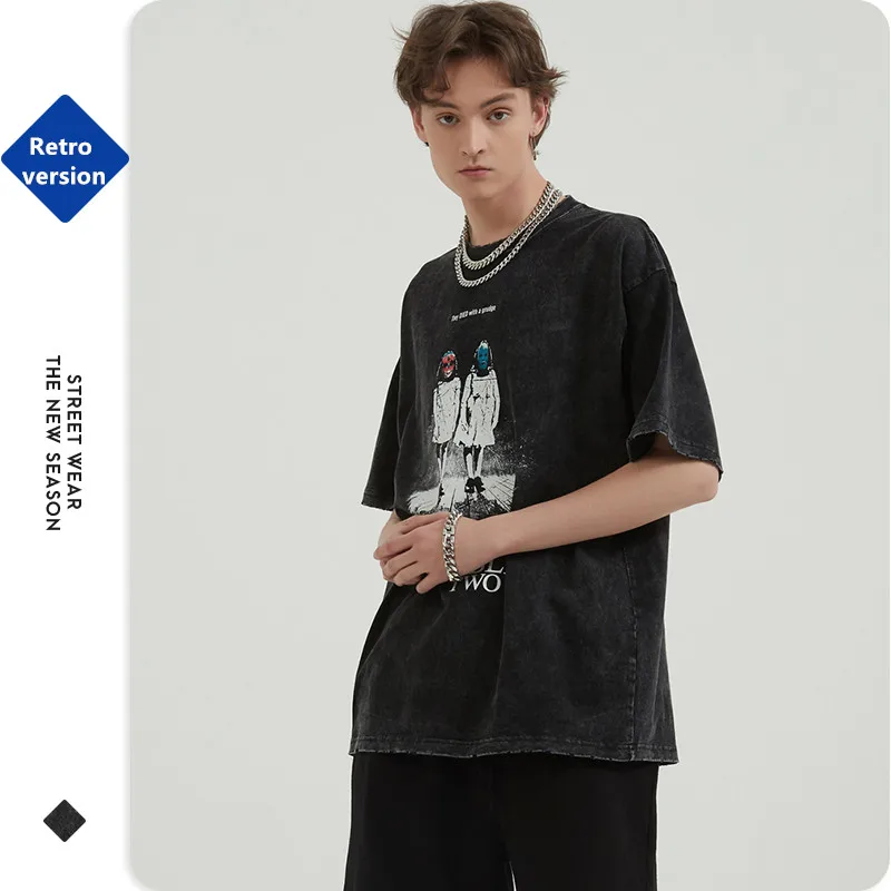 Футболка мужская оверсайз в стиле Харадзюку, винтажная промытая ули...