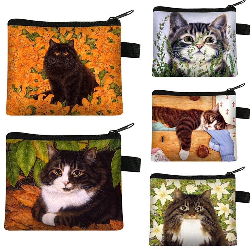 Интересный Кошелек для монет с принтом кота, Женская Повседневная с...